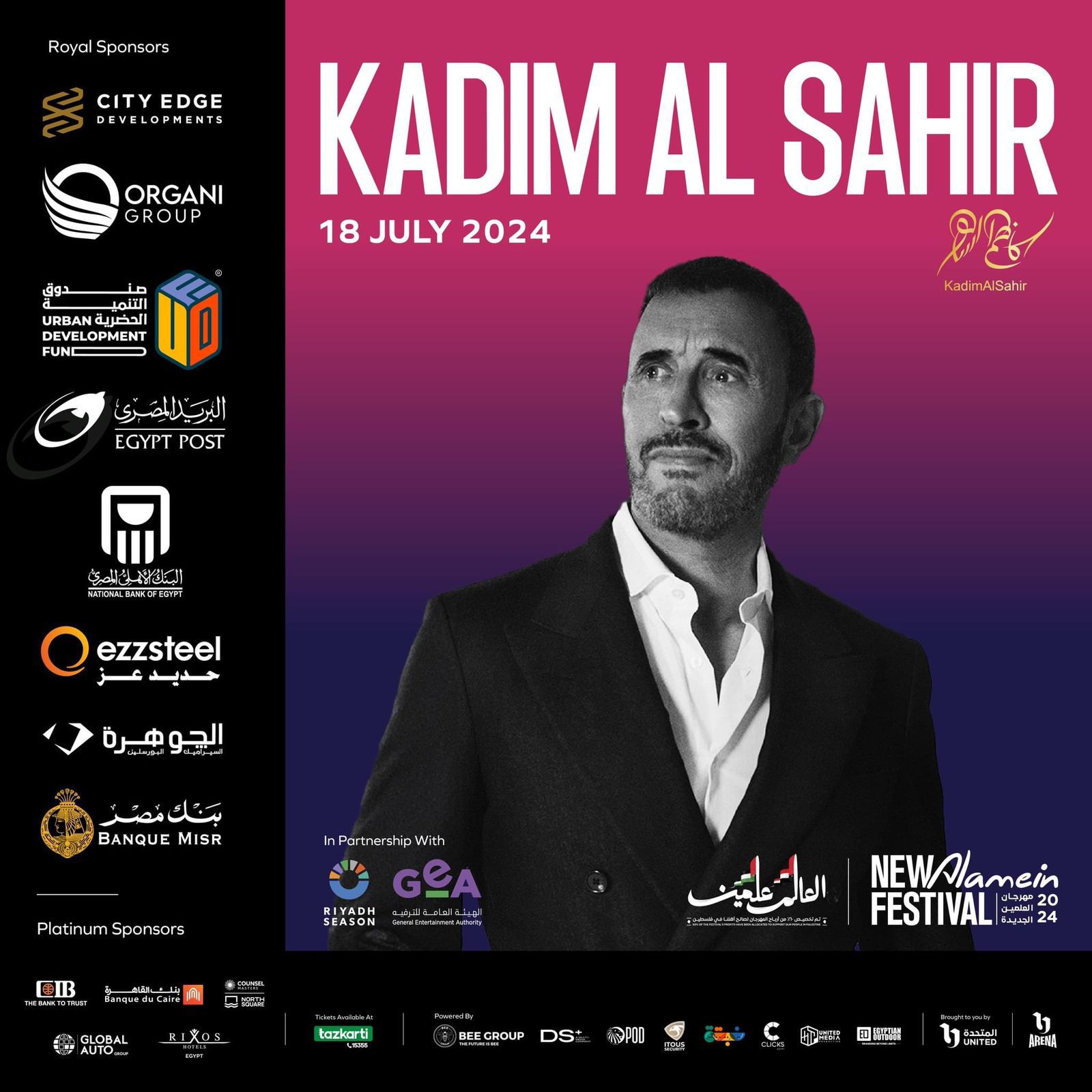 ساعات قليلة تفصلنا عن الحفل المنتظر لنجم الغناء العربى، القيصر كاظم الساهر، والذى يأتي ضمن الفعاليات الفنية للدورة الثانية من مهرجان العلمين، والذى سيحييه يوم الخميس 18 يوليو الجارى.