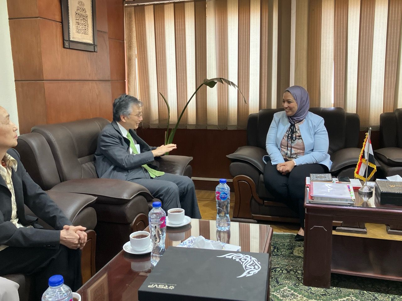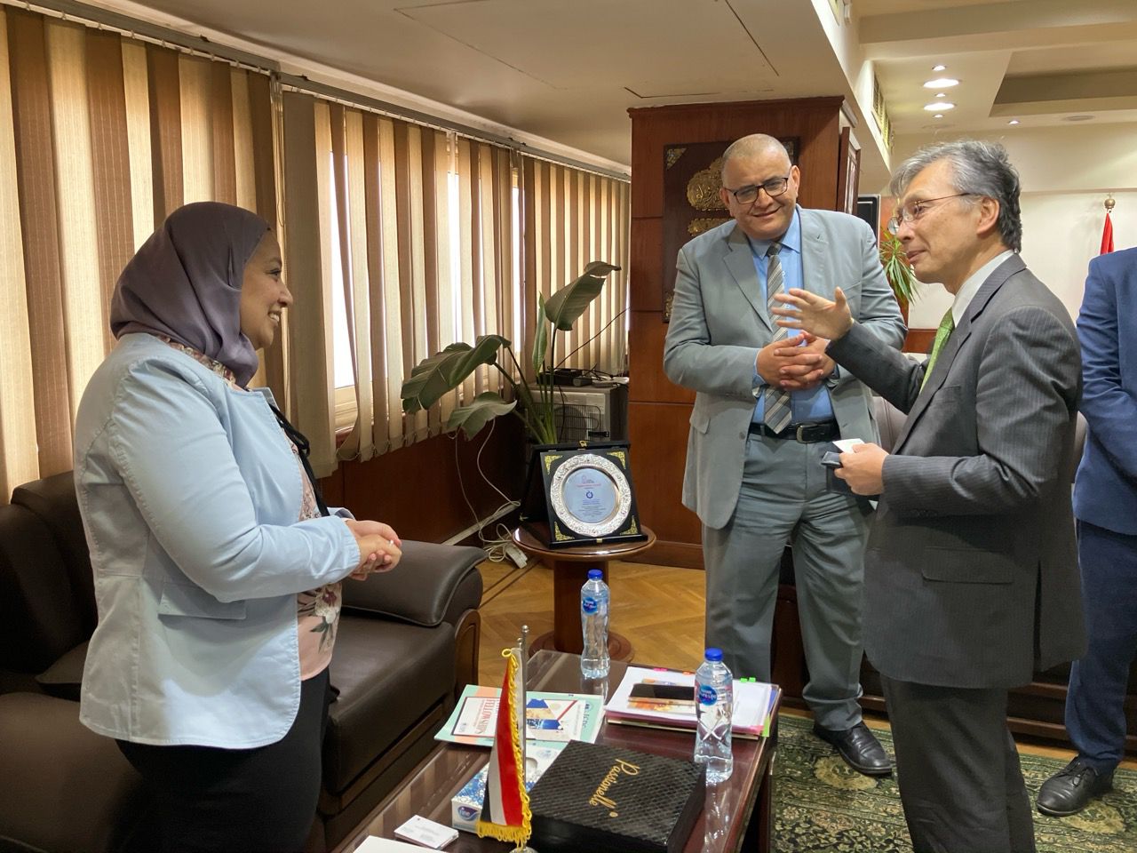 استقبلت الدكتورة جينا الفقي، القائم بأعمال رئيس أكاديمية البحث العلمي والتكنولوجيا السفير الياباني بالقاهرة السيد هيروشي أوكا والوفد المصاحب له، وهم السيد توشيفومي إيتو، مدير مركز الإعلام والثقافة بسفارة اليابان، والسيدة الدكتور ناوكو فوكامي، مدير المكتب الدائم للجمعية اليابانية لتطوير العلوم لبحث سبل تعزيز التعاون المشترك بين الأكاديمية والمؤسسات البحثية والمدن العلمية باليابان، وذلك بمقر أكاديمية البحث العلمي والتكنولوجيا.