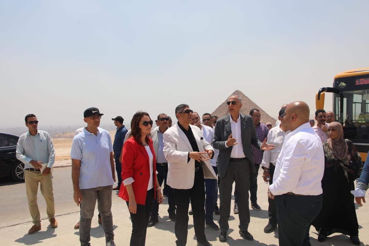 تفقد خلاله المحافظ مسار الزياره بدءًا من بوابات دخول الزوار وأماكن انتظار السيارات والقاعة الضخمة لشرح تاريخ الأهرامات ومراحل الزيارة والبازارات وأماكن تقديم الخدمات للزوار ومنظومة النقل الصديقة للبيئة .