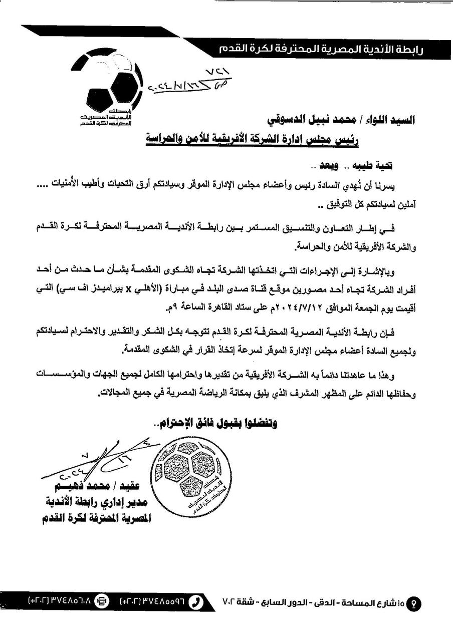 في تطور جديد لواقعة الاعتداء على صحفي عقب مباراة الأهلي وبيراميدز ، تقدمت رابطة الاندية بالشكر للشركة الافريقية لسرعة اتخاذها الاجراءات اللازمة ضد الموظف الذي اعتدى على صحفي في واقعة فردية.