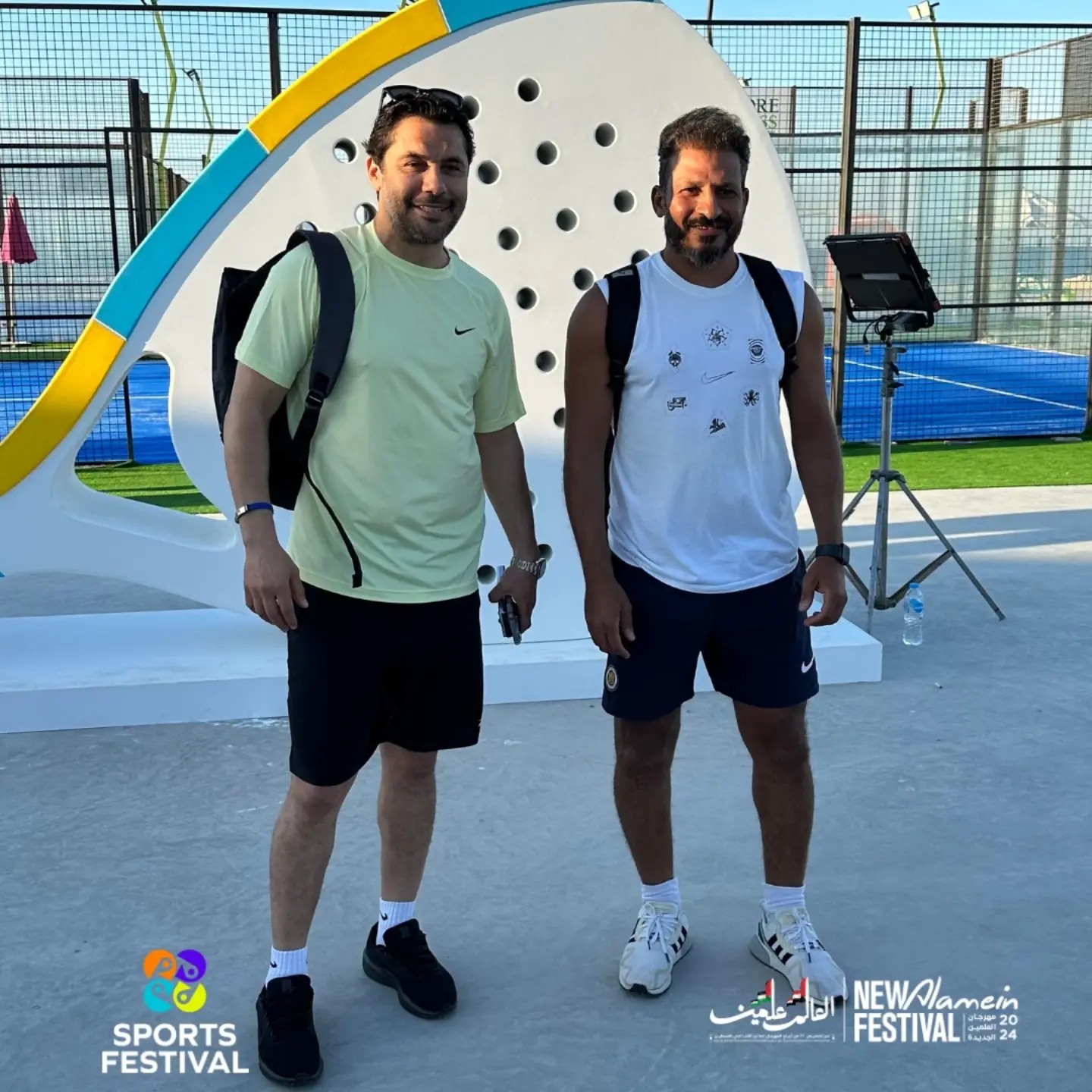 وجدير بالذكر أن شارك نجوم الجيل الذهبي لمنتخب مصر الثنائى الصقر أحمد حسن، وسيد معوض، في منافسات البادل التي تقام بمهرجان العلمين الجديدة.