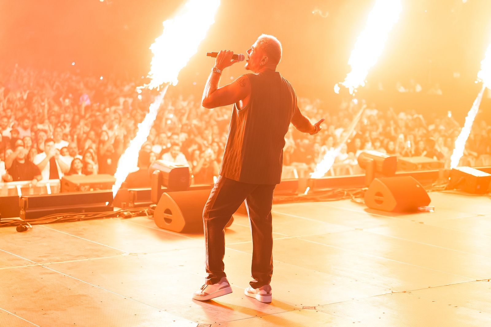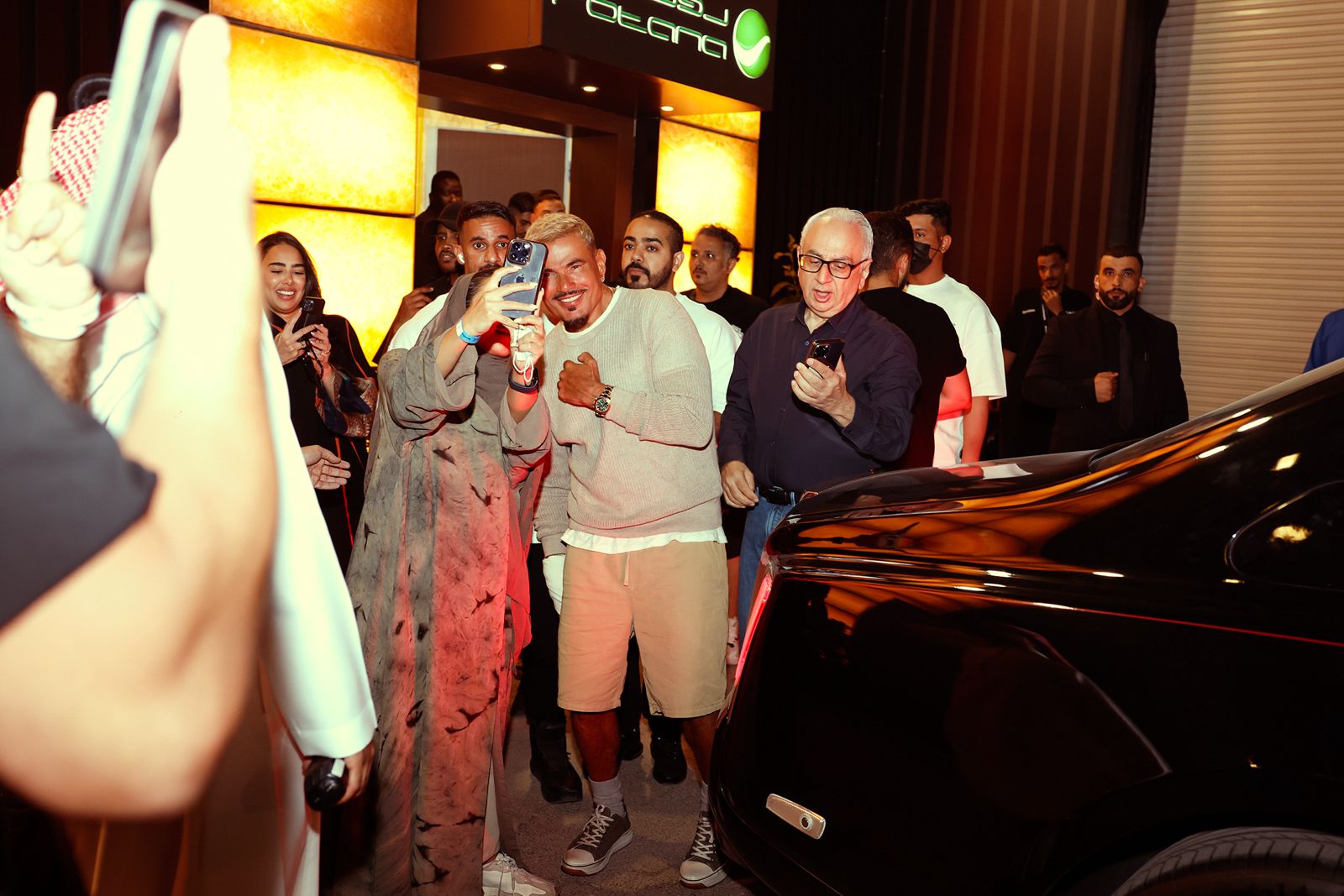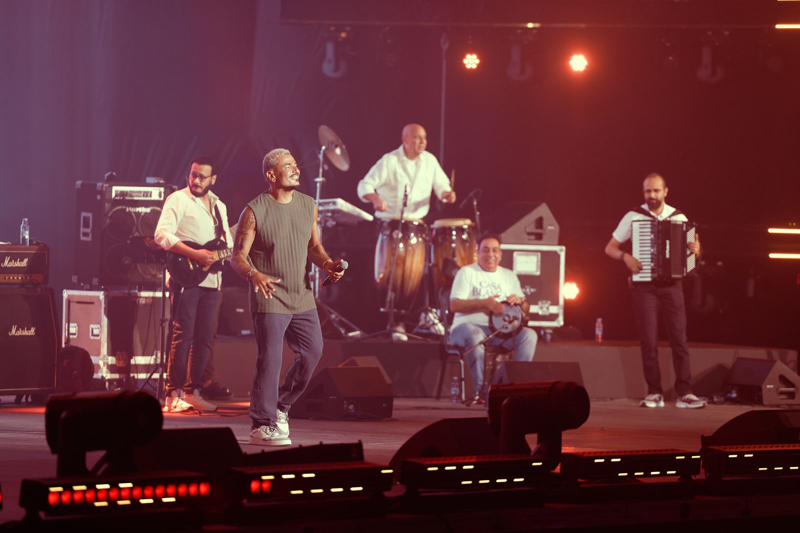 احتشد الالاف من عشاق عمرو دياب في المسرح قبل انطلاق الحفل بساعات ، الى أن أطل عمرو دياب عليهم بأزياء صيفية مميزة .