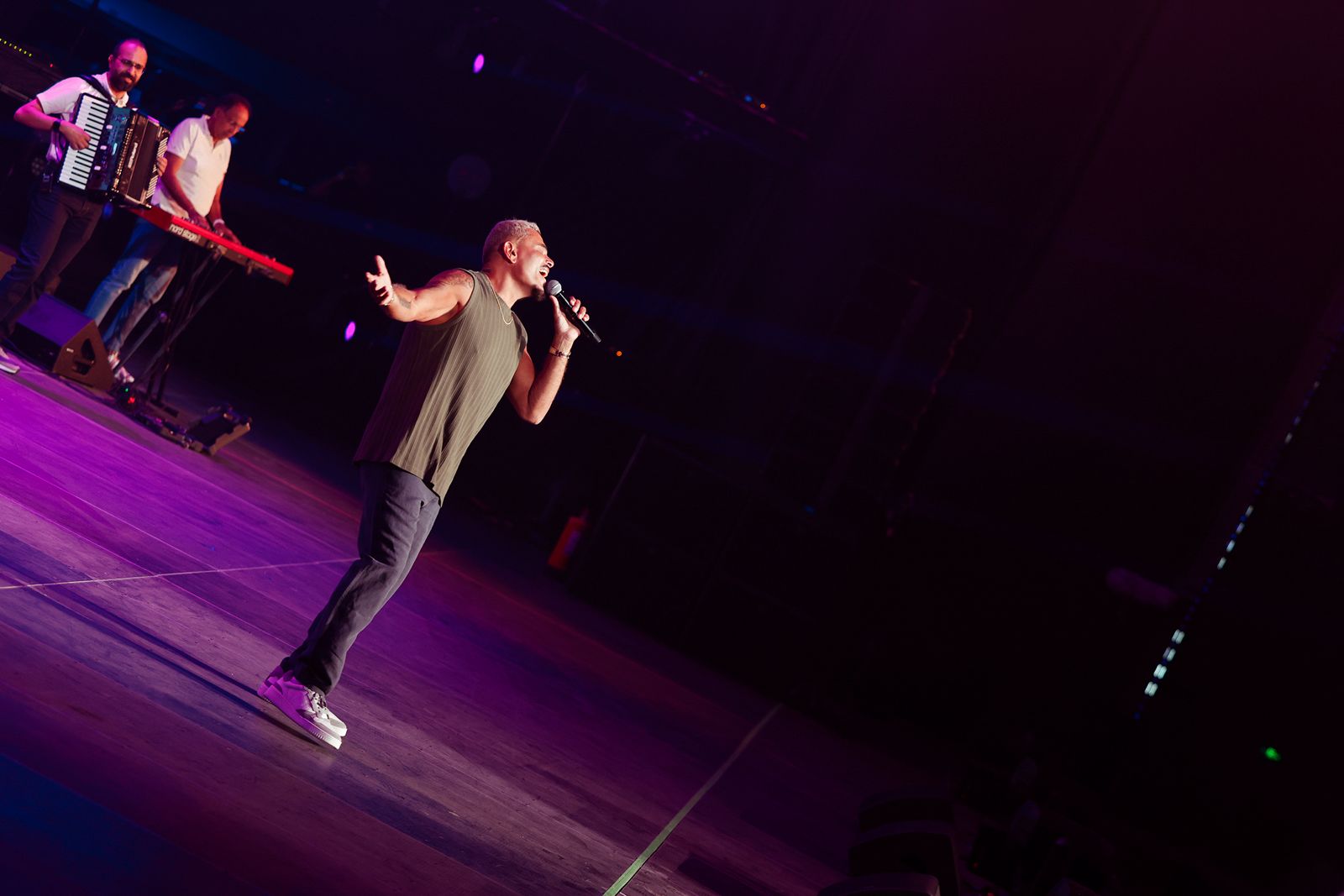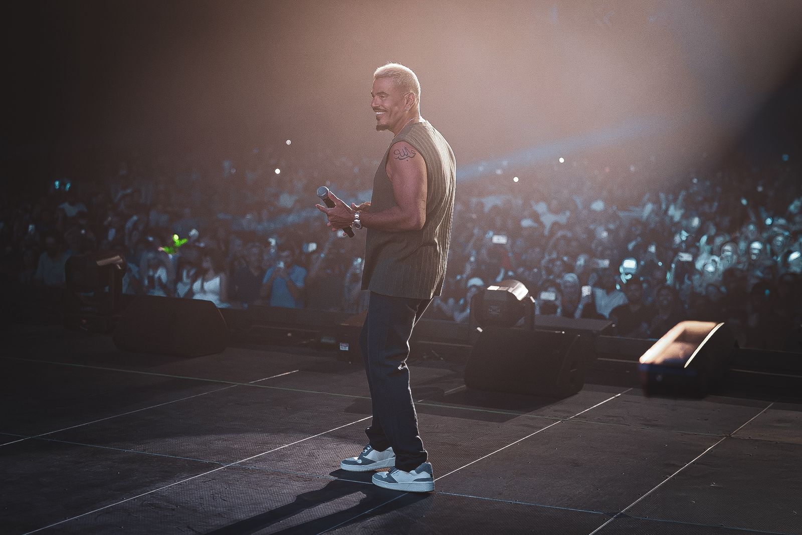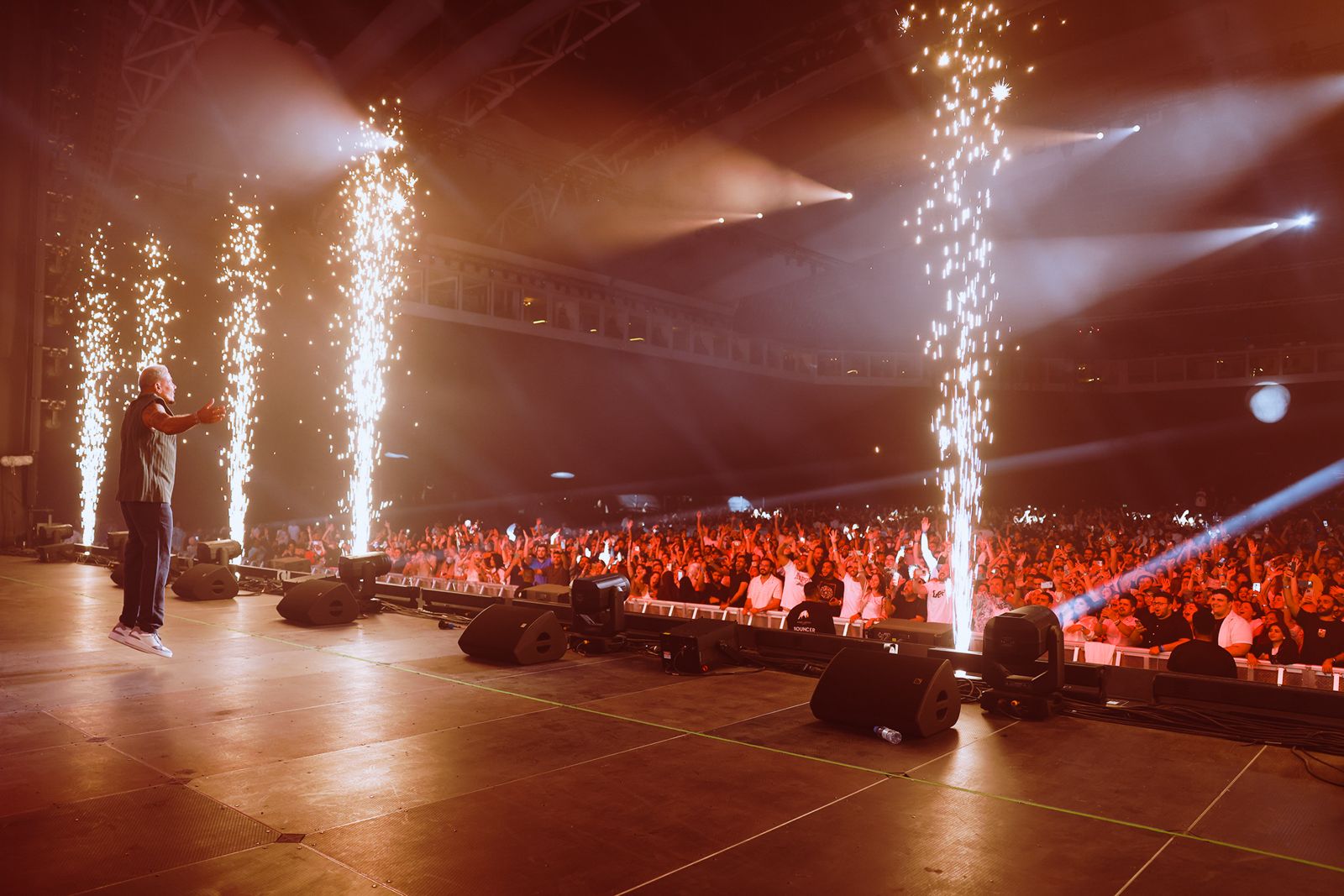 احتشد الالاف من عشاق عمرو دياب في المسرح قبل انطلاق الحفل بساعات ، الى أن أطل عمرو دياب عليهم بأزياء صيفية مميزة .