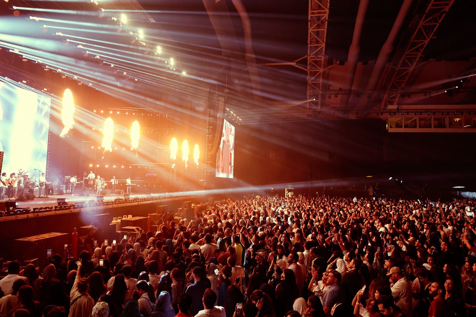 ووسط حماس جماهيري كبير تابع عمرو دياب تقديم مجموعه من اشهر اغانيه مثل يتعلموا، هتتدلع، قمرين، نور العين ، ليلي نهاري، العالم الله.