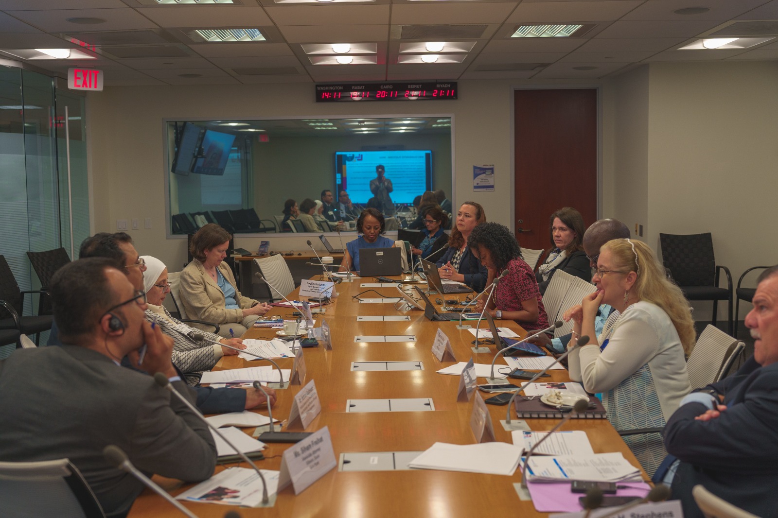 جاء ذلك خلال لقاء موسع "للعسومي" ووفد البرلمان العربي مع نواب رئيس البنك الدولي، سعادة السيد عثمان ديوني نائب الرئيس الإقليمي للشرق الأوسط وشمال أفريقيا، وسعادة السيدة هلا الشيخ عابد نائب الرئيس الإقليمي للشرق الأوسط وشمال أفريقيا بمؤسسة التمويل الدولية، وعدد من المديرين التنفيذيين المعنيين بمنطقة الشرق الأوسط وشمال أفريقيا، والأستاذة زينة النابلسي مدير الإدارة القانونية بمؤسسة التمويل الدولية، كما شارك في الاجتماع ممثلين للأجهزة الرئيسية الخمس التابعة للبنك الدولي، وهي: البنك الدولي للإنشاء والتعمير، والمؤسسة الدولية للتنمية، ومؤسسة التمويل الدولية، والوكالة الدولية لضمان الاستثمار، والمركز الدولي لتسوية منازعات الاستثمار.
