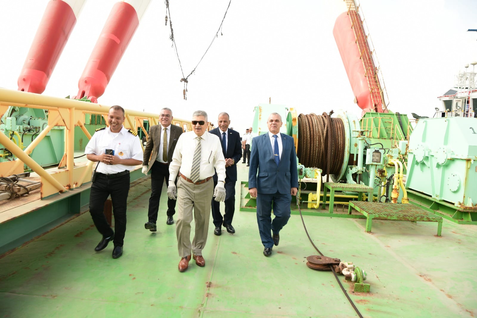 شملت الجولة التفقدية، سطح الرافعة والأوناش الرئيسية، وغرفة القيادة، بالإضافة إلى غرف الإعاشة، وغرف الماكينات.