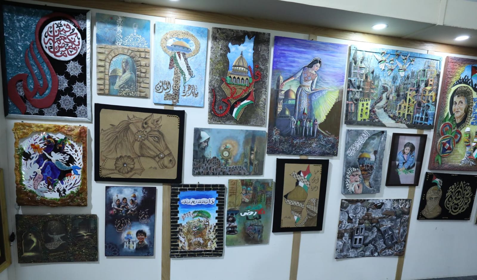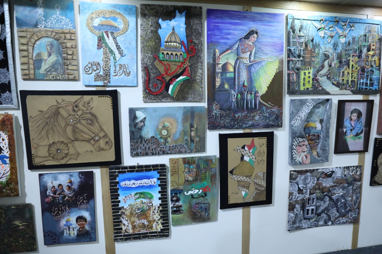 وفي جانب كامل من ركن اللوحات الفنية معلق أكثر من عشرين صورة عن القضية الفلسطينية، شارك في إعدادها خمس مناطق أزهرية وهم البحيرة والإسكندرية والقاهرة وبني سويف ودمياط، هذه اللوحات من إنتاج معلمي ومعلمات التربية الفنية، فضلاً عن طلاب وطالبات من المعاهد الأزهرية.