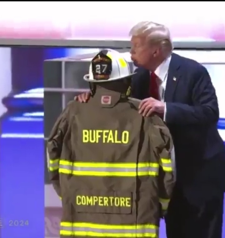 قام الرئيس الأمريكي السابق والمرشح الحالي دونالد ترامب بتقبيل خوذة رجل الإطفاء الكوري كومبيراتوري، الذي قتل أثناء محاولة اغتياله الفاشلة ، السبت الماضي في تجمع انتخابي ببنسلفانيا.