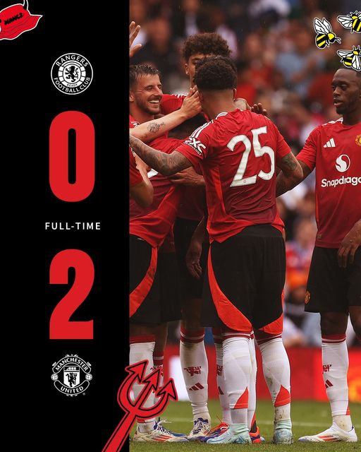فاز فريق مانشيستر يونايتد الإنجليزي، على فريق رينجرز الأسكتلندي، بهدفين نظيفين ، في المباراة التي جمعت الفريقين، على ستاد مورايفيلد، بالعاصمة الأسكتلندية إدنبرة، ضمن التحضيرات النهائية، إستعداداً للموسم الجديد.