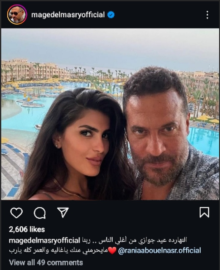 احتفل النجم ماجد المصري بعيد زواجه علي طريقته الخاصة ونشر صورة رومانسية تجمعه بزوجته رانيا أبو النصر وعلق عليها " النهاردة عيد جوازى من أغلي الناس .. ربنا ما يحرمني منك يا غالية والعمر كله يا رب "