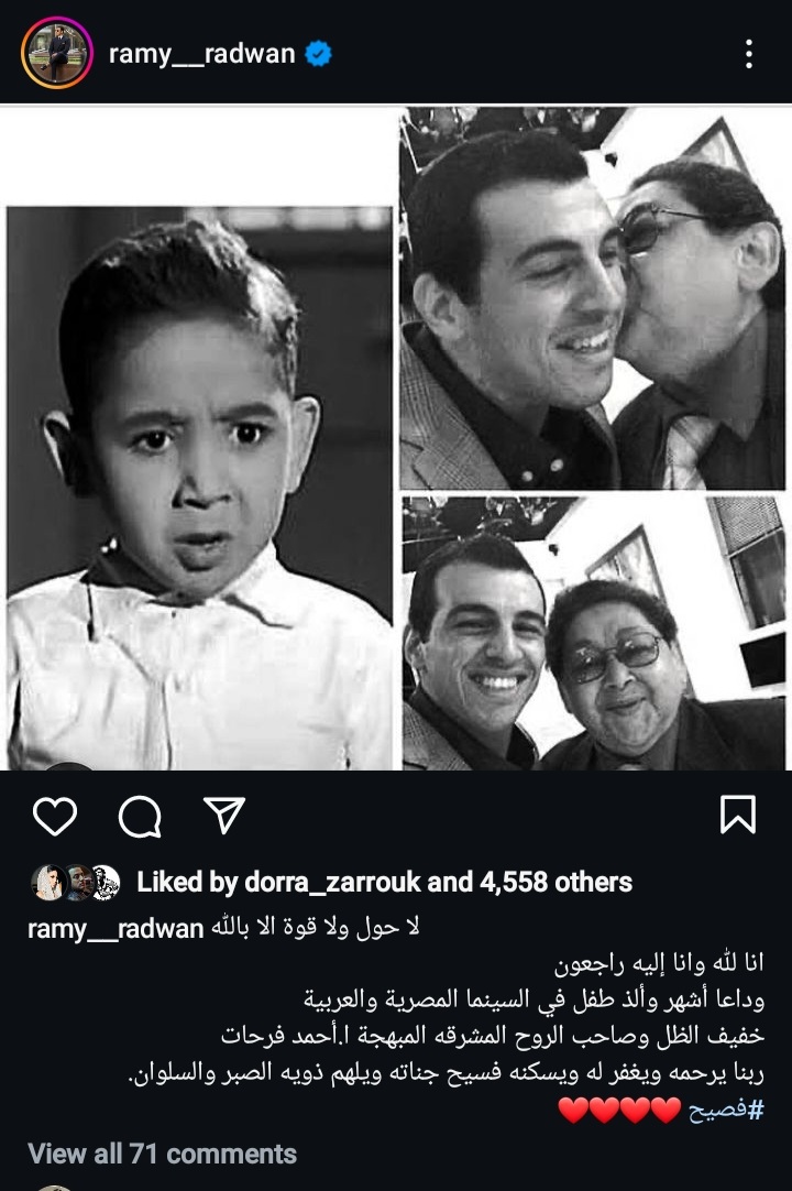 رامي رضوان ناعيا أحمد فرحات "وداعآ ألذ طفل في السينما المصرية والعربية"