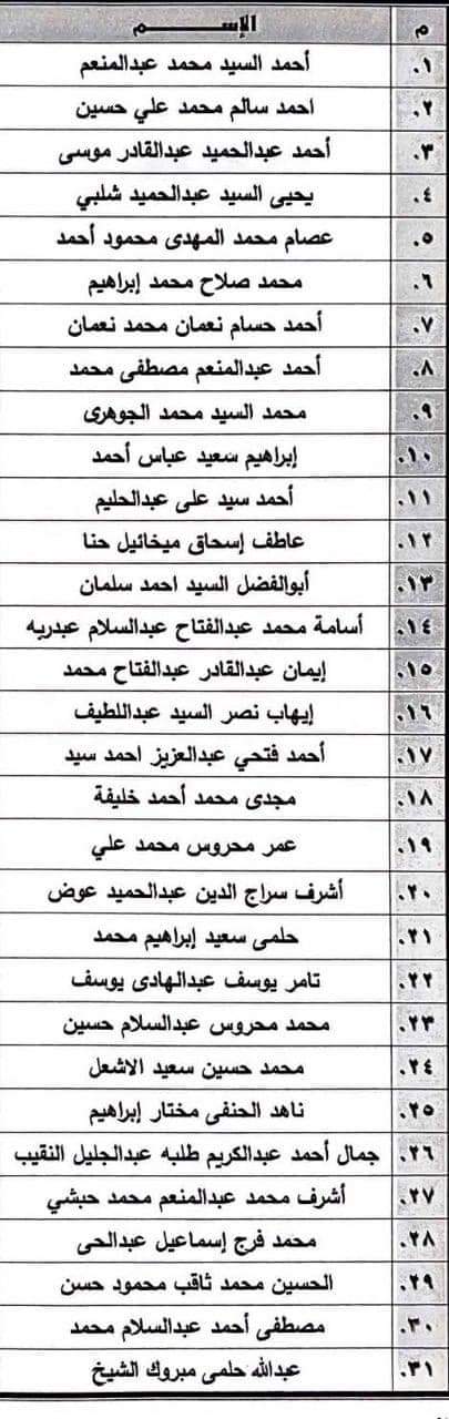 وجاءت أسماء المفرج عنهم 79 شخصاً من المحبوسين احتياطياً كالتالي: