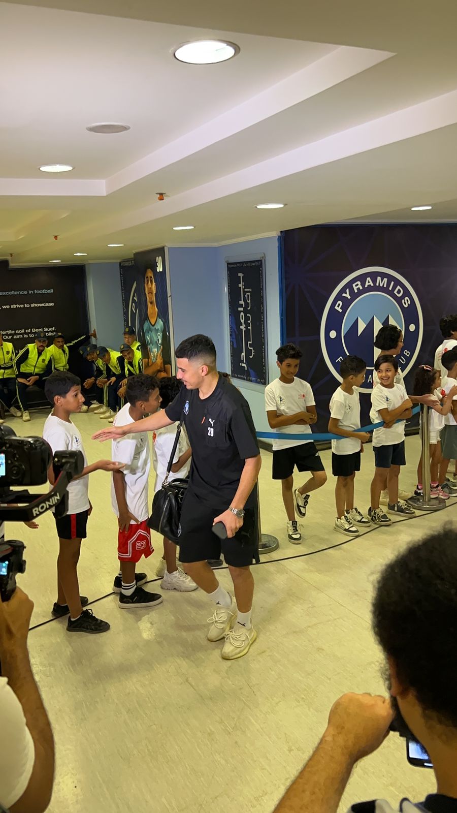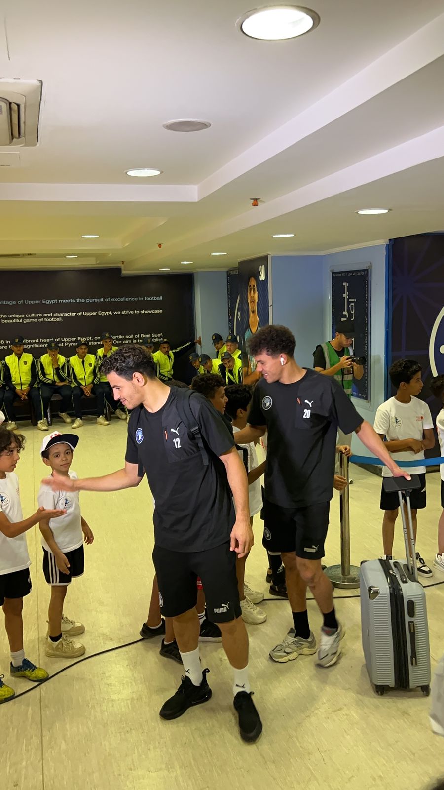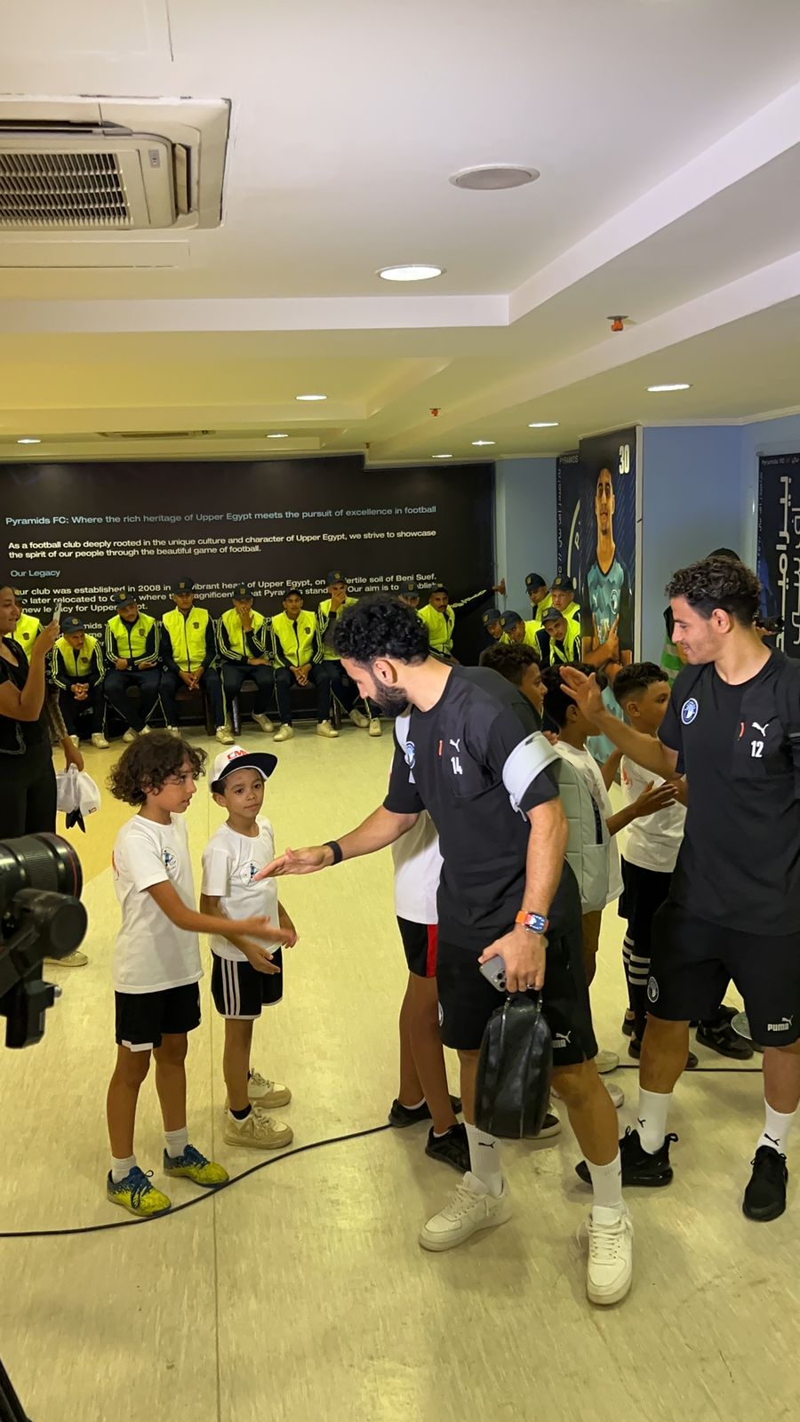 وكان في استقبال الأهلي، أطفال بنك الكساء المصري في إطار الدور المجتمعي لنادي بيراميدز.