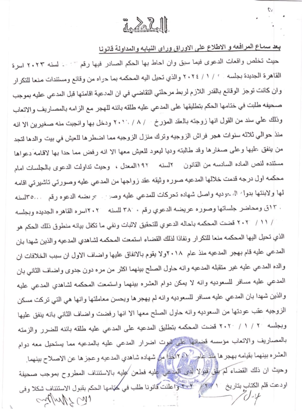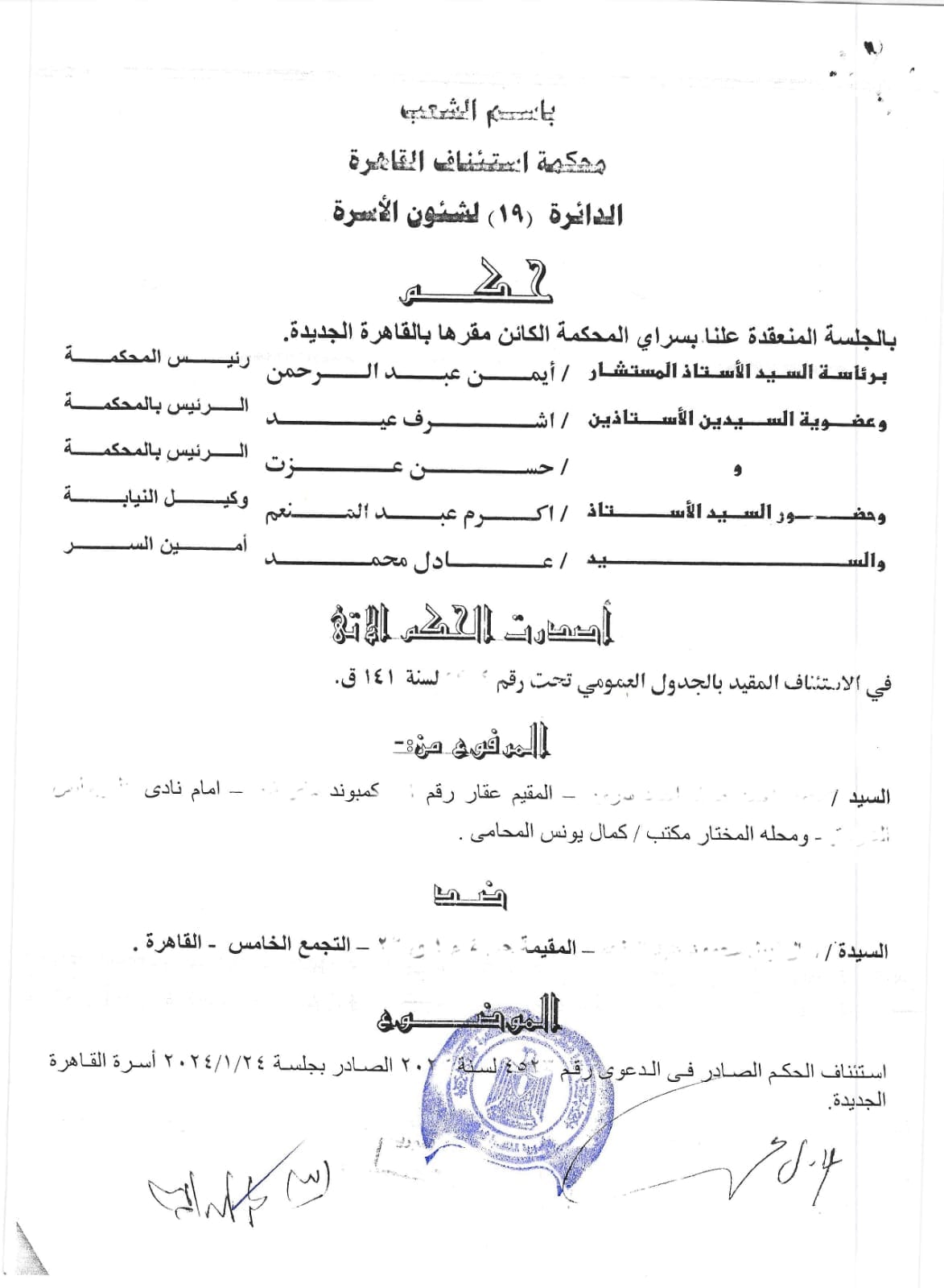 محكمه استئناف القاهره تصدر حكم هام لشئون الاسره