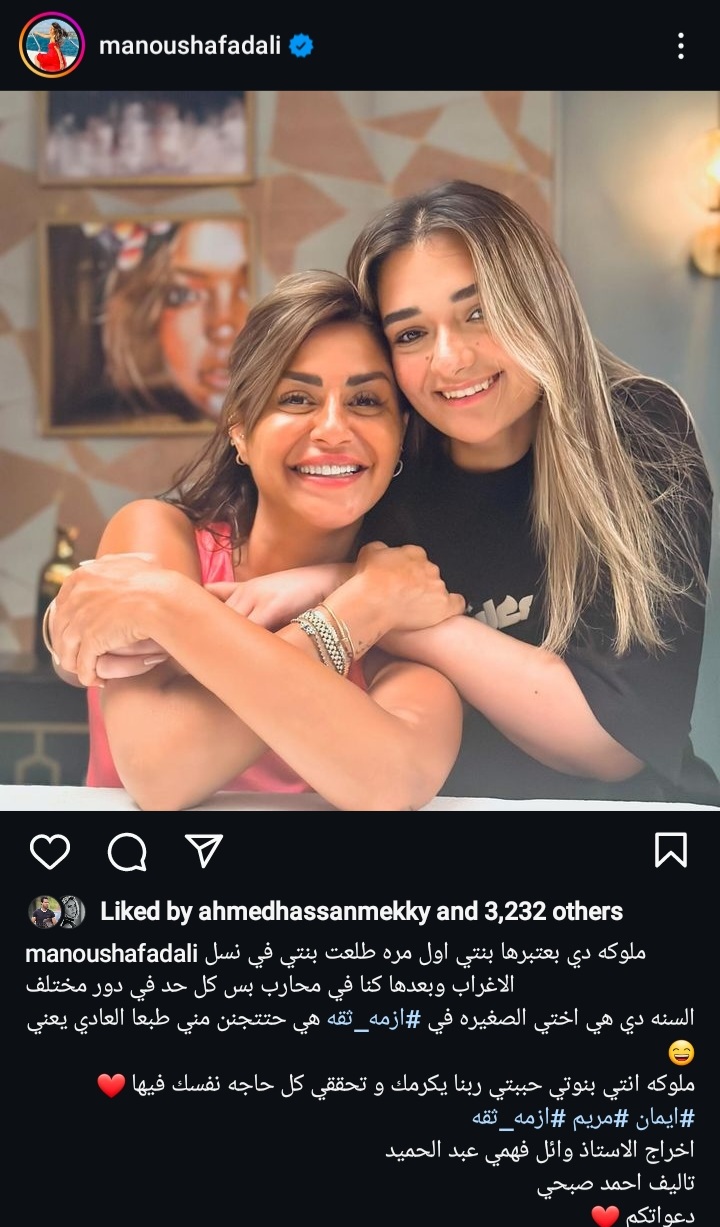 نشرت الفنانة منة فضالي صورة تجمعها بالفنانة ملك أحمد زاهر عبر صفحتها الرسمية " انستجرام" وعلقت عليها " ملوكة دى بعتبرها بنتي أول مرة طلعت بنتي في نسل الاغراب وبعدها كنا في محارب بس كل واحد في دور مختلف السنة دى هي أختي الصغير في أزمة ثقة هي هتتجنن مني دة العادى ملوكة انتي بنتي وحببتي ربنا يكرمك "