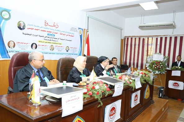 جدير بالذكر أن لجنة المناقشة والحكم تشكلت من: د.نهله صبري الصعيدي (مشرفاً- ورئيساً) ، ود.محمد عمر خالد (مشرفاً- وعضواً) ، ود.هدى محمد درويش (مناقشاً-وعضواً)، ود.علي عبد الوهاب مطاوع (مناقشاً-وعضواً) ، وفي ختام المناقشة تم منح الباحث درجة الدكتوراه.