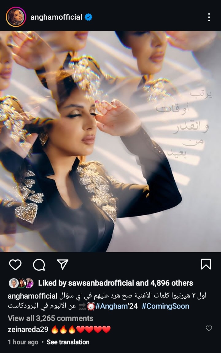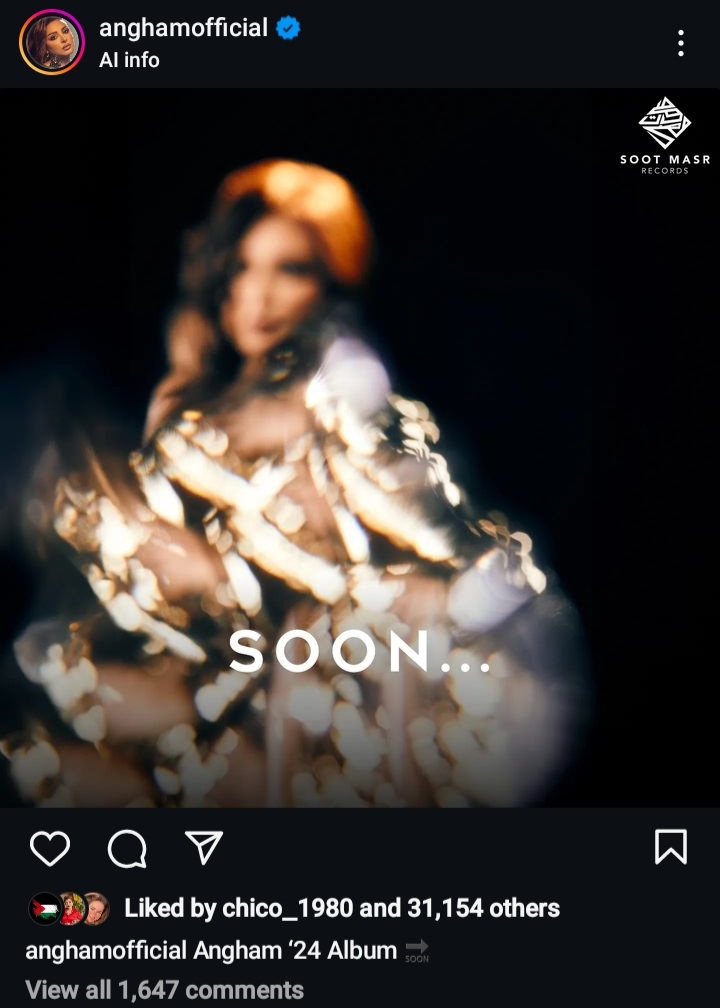 وكانت أنغام قد روجت منذ أيام لألبومها الجديد، بنشر البوستر الدعائي قائلة: "قريبًا".