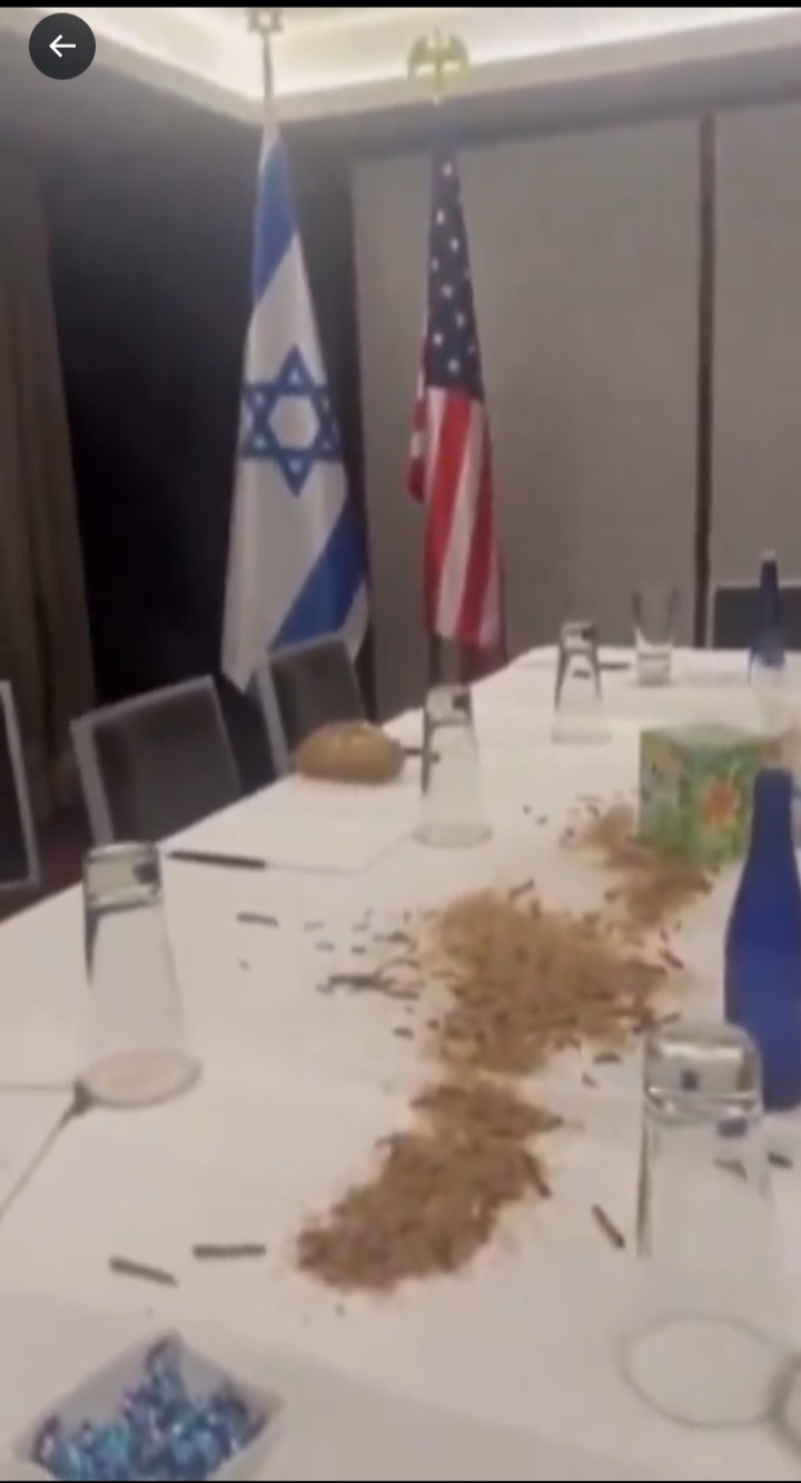 ويظهر في الفيديو أسرابا من الصراصير و الديدان وهي تزحف على طاولة بها أكواب للشرب، خلفها العلمان الإسرائيلي والأمريكي.