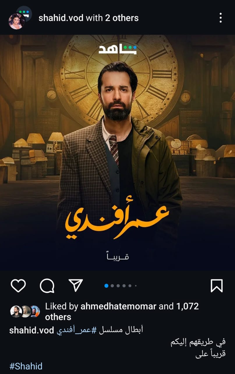 بدأت منصة «شاهد» في الترويج لمسلسل «عمر أفندي» والذي من المقرر بدء عرضه قريبا، وذلك من خلال نشر البوستر الرسمي للمسلسل على الصفحة الرسمية عبر موقع تبادل الصور والفيديوهات «إنستجرام» .