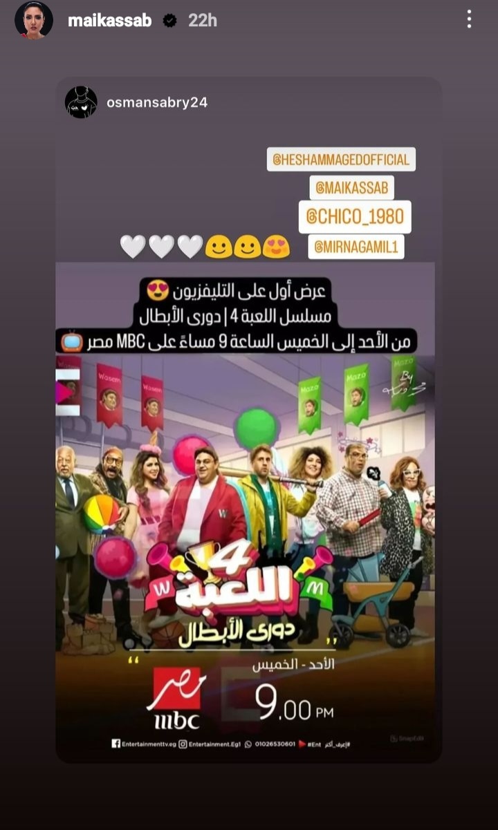 نشرت الفنانة مي كساب بوستر مسلسل اللعبة 4، عبر ثفحتها الرسمية وعلقت عليها عرض أول على التليفزيون مسلسل “اللعبة 4 دور الأبطال”.