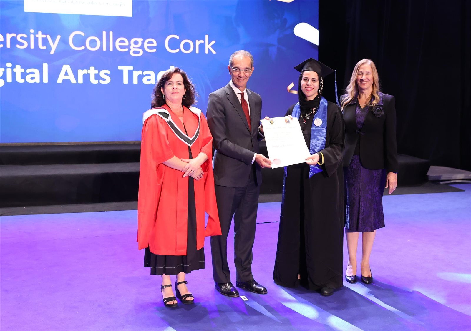 حضر فعاليات الحفل المهندس رأفت هندى نائب الوزير لتطوير البنية التحتية التكنولوجية والتحول الرقمى، والمهندس بكر البيومى نائب الوزير للتخطيط البحثى التكنولوجى، والمهندس محمد شمروخ الرئيس التنفيذى للجهاز القومى لتنظيم الاتصالات، والأستاذ عبده علوان القائم بتسيير أعمال رئيس مجلس إدارة الهيئة القومية للبريد، والدكتور عبد الرحمن بن محمد نائب رئيس جامعة سينز ماليزيا، والدكتورة ساندرا دين أتور نائب رئيس الإدارة العالمية بجامعة كوينز، والدكتور غسان دوداك وكيل كلية الهندسة للحوكمة بجامعة أوتاوا، والدكتورة أورلا ميرفى رئيس قسم العلوم الانسانية الرقمية بجامعة كوليدج كورك.
