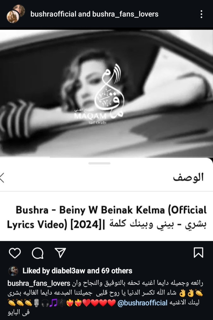 بشري تطرح أحدث أغانيها "بيني وبينك كلمة"