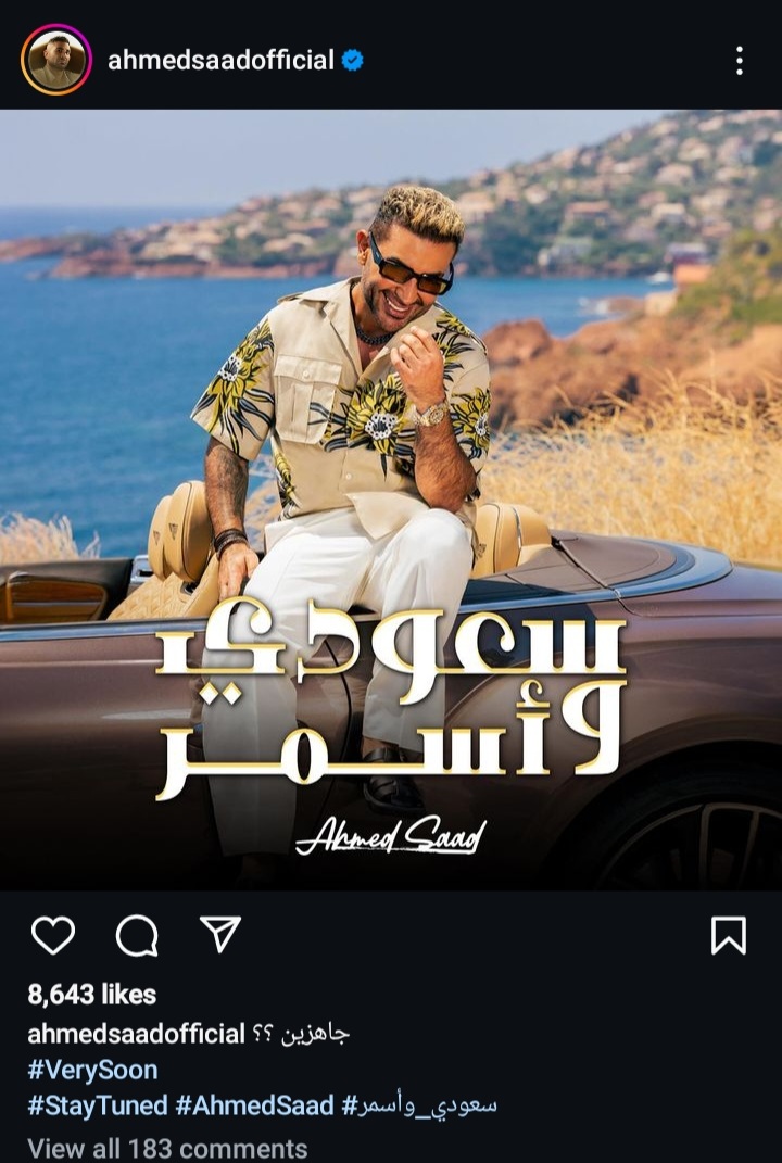 يستعد اأحمد سعد لطرح أغنيته الجديدة " سعودي وأسمر" ونشر سعد بوستر الدعائي للأغنية عبر صفحته " إنستجرام" وكتب " جاهزين"