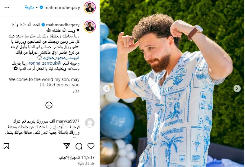 محمود حجازى يكشف عن جنس مولوده ويوجه رسالة لزوجته (صور)