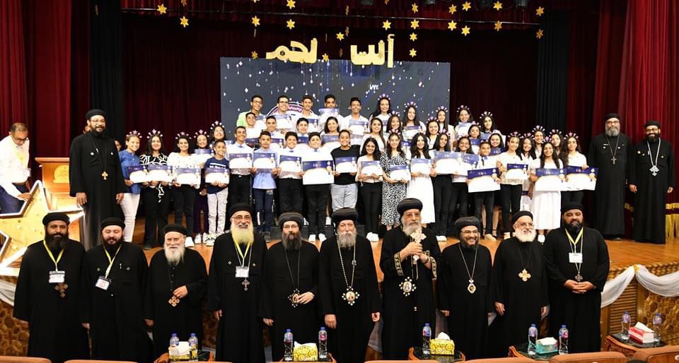 شهد البابا تواضروس الثاني، مساء اليوم، احتفالية تسليم شهادات دارسي كورس "أنت نجم" الثاني والثالث الخاص بالمرحلتين الإعدادية والثانوية، والذي يقدمه مركز البابا كيرلس عمود الدين للدراسات اللاهوتية التابع لأسرة خريجي الإكليريكية بالإسكندرية.