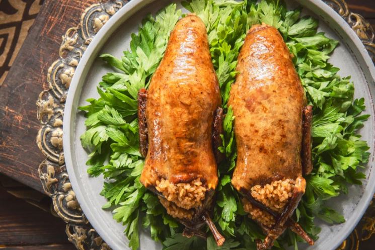 حمام محشي بالأرز بطريقتها الأصلية