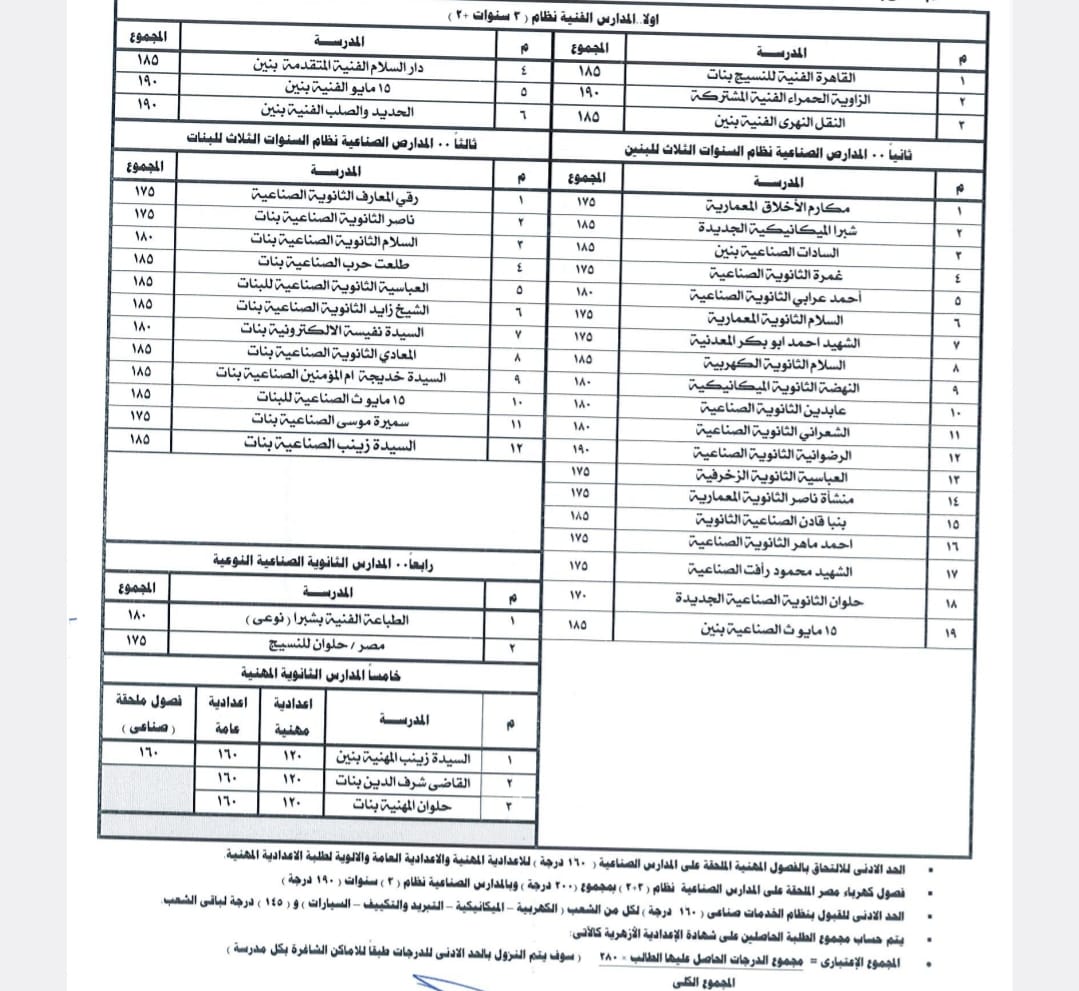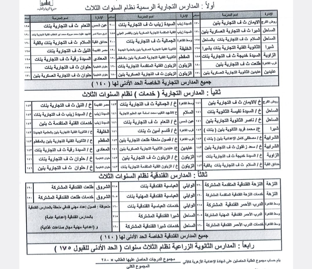 قرر د. إبراهيم صابر محافظ القاهرة النزول بدرجة الحد الأدنى لتنسيق القبول بمدارس التعليم الفنى( صناعى، تجارى ، فندقى، زراعى) للعام الدراسى ٢٠٢٤/ ٢٠٢٥ بالمدارس التى يوجد بها أماكن شاغرة.