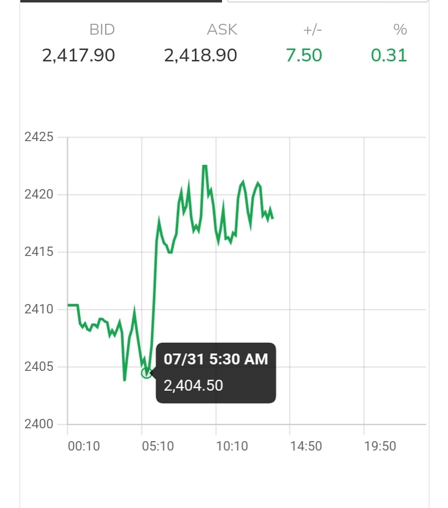 ارتفعت أسعار الذهب بالأسواق العالمية حيث سجل 2418 دولار للاوقية.