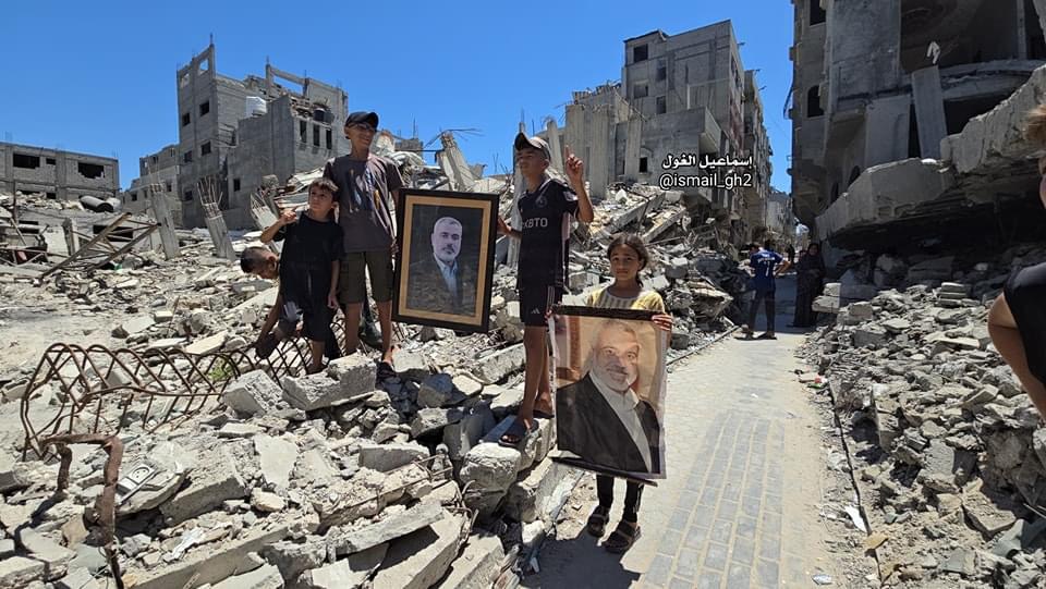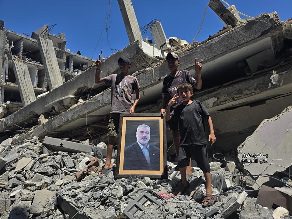 وكانت الصور الأخيرة التى التقطها المذيع إسماعيل الغول هى لأطفال يحملون صور إسماعيل هنية ، من أمام منزله الذى قصفه الاحتلال، قائلا:" بأجواء حزينة يودع المخيم الرجل الوطني الكبير، من على أنقاض منزل رئيس حـ،ركة حمـ،،اس إسماعيل هـnنية في مخيم الشاطيء غرب مدينة غـ.ـزة"
