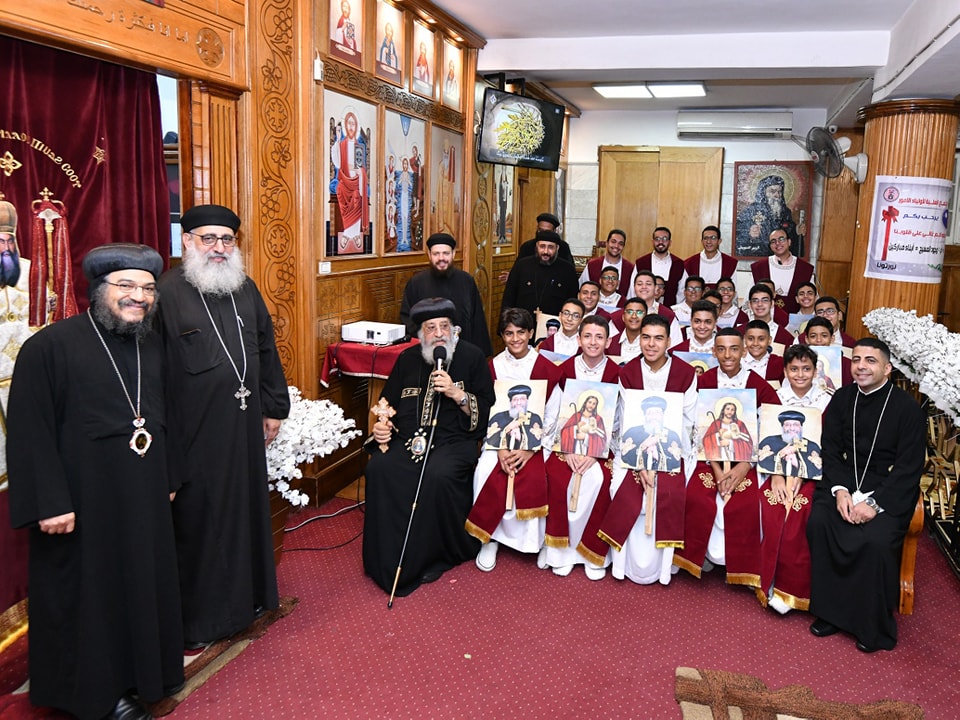 وقبل العظة كرّم قداسته اعضاء هيئة تدريس وخريجي الدفعة الثالثة من معهد "أربصالين" لإعداد المرتلين بالإسكندرية.