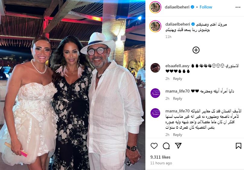كما نشرت النجمة داليا البحيري صورة برفقة زوجها وبشري وعلقت عليها "مبروك أختي وصديقتي بشبوش ربنا يسعد قلبك ويهنيكي "