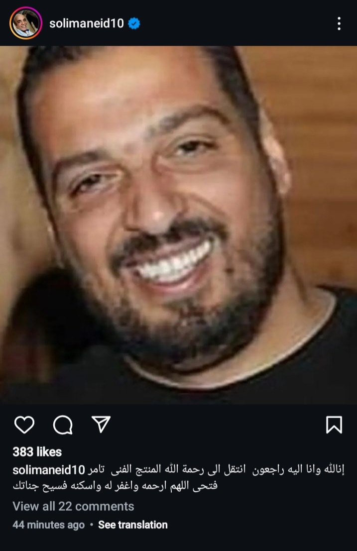 نجوم الفن والإعلام ينعون تامر فتحي (صور)