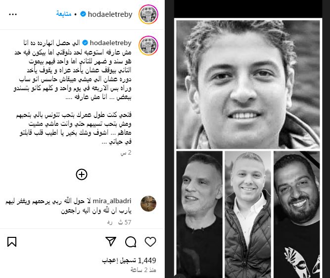 هدى الإتربي ترثي المنتجين الأربعة بعد وفاتهم برسالة مؤثرة "اللي حصل مش عارفة أستوعبه"