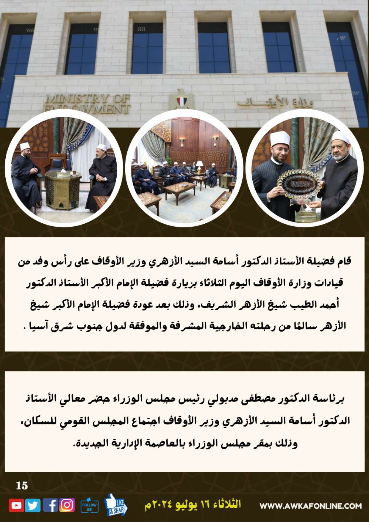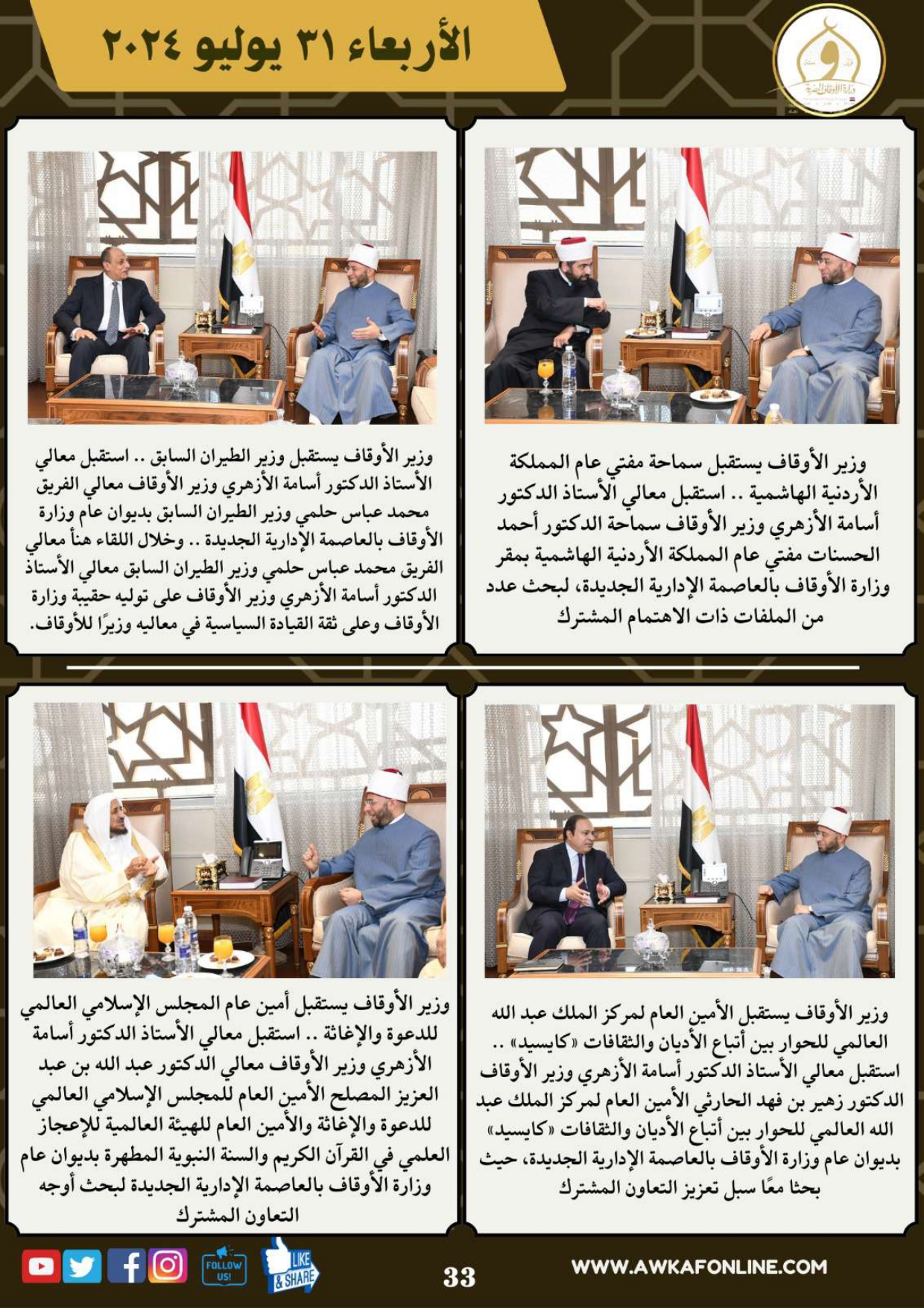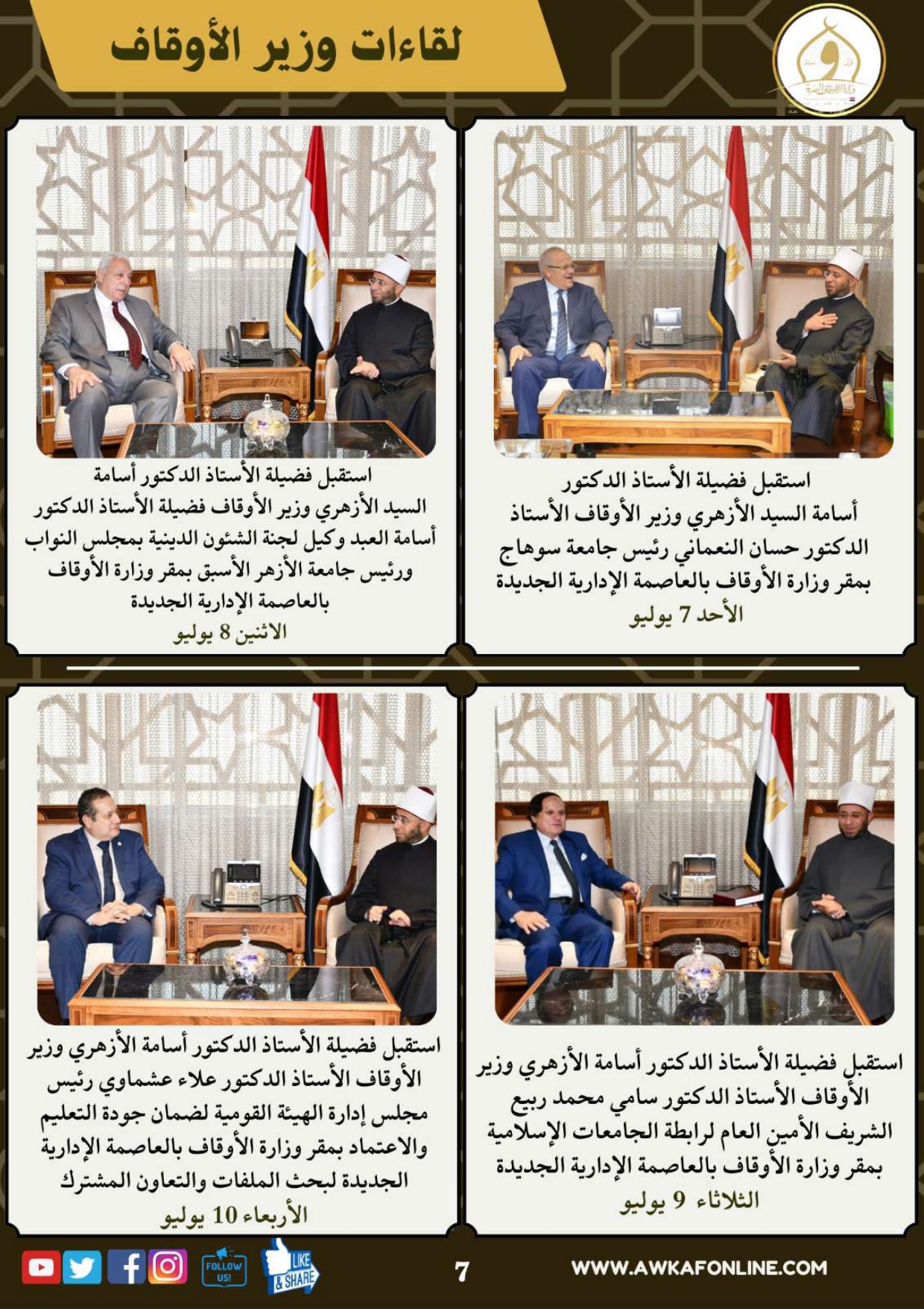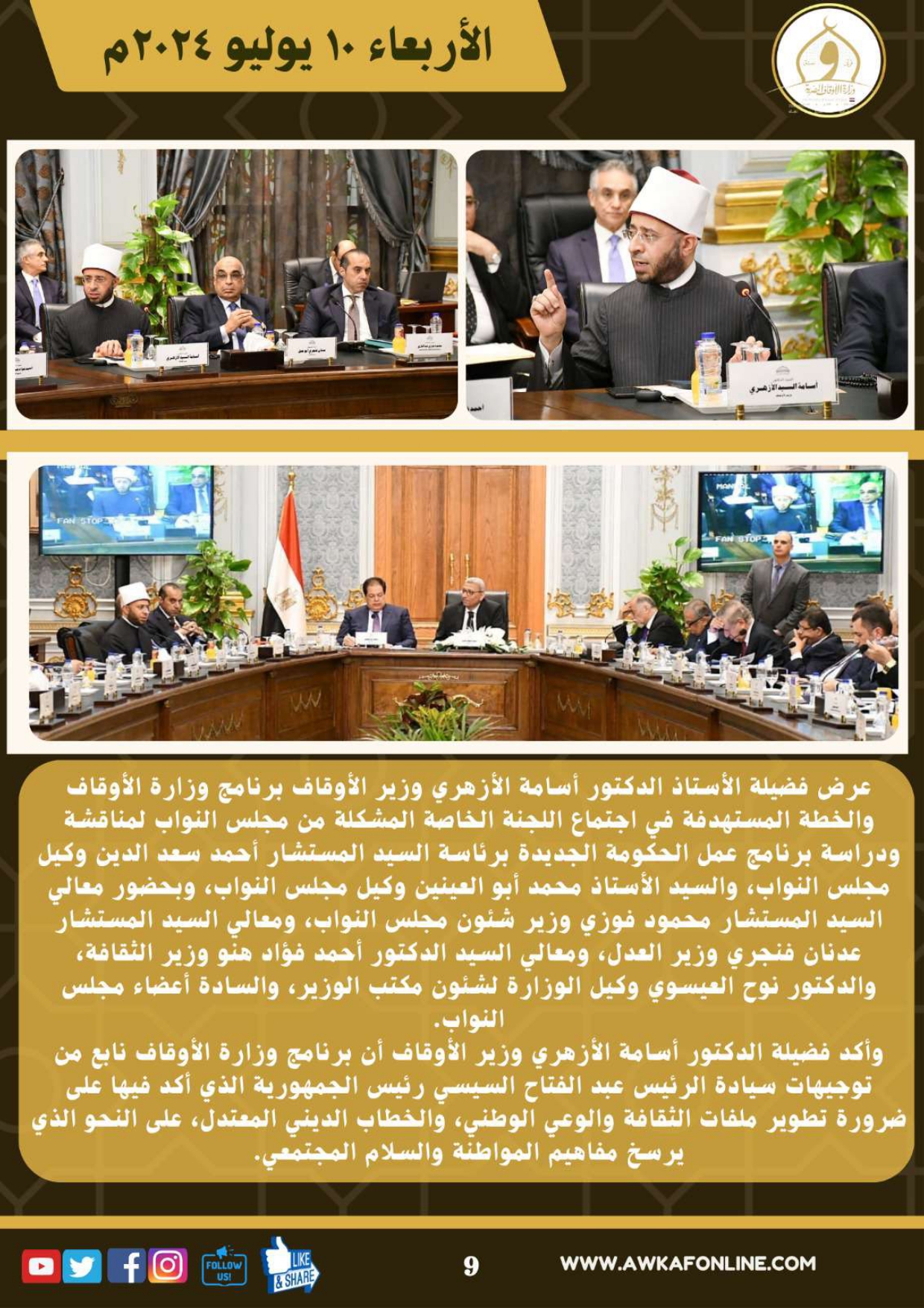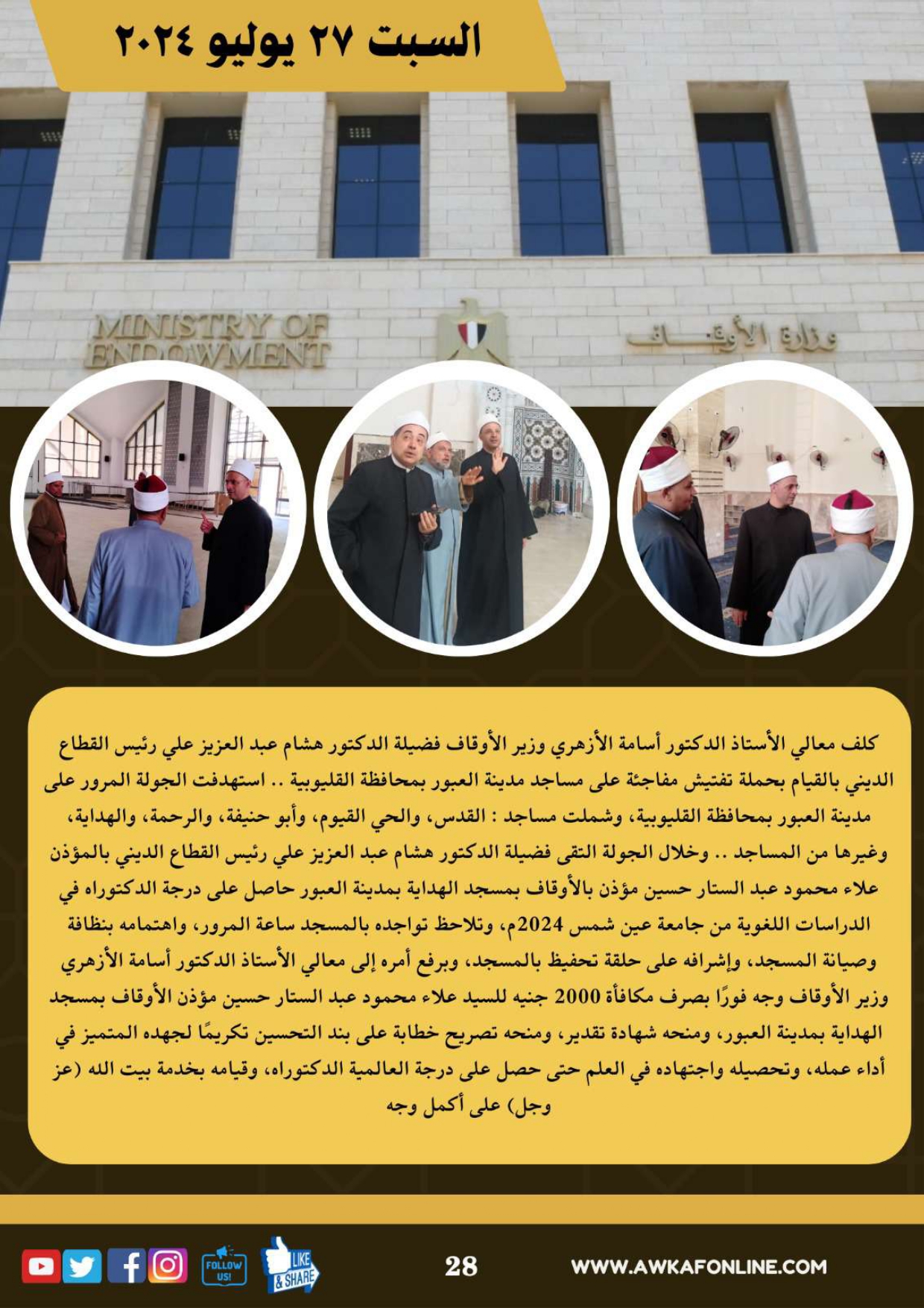 ننشر الحصاد الشهري لرصد أنشطة وزارة الأوقاف في الفترة من 3 حتى 31 يوليو 2024م