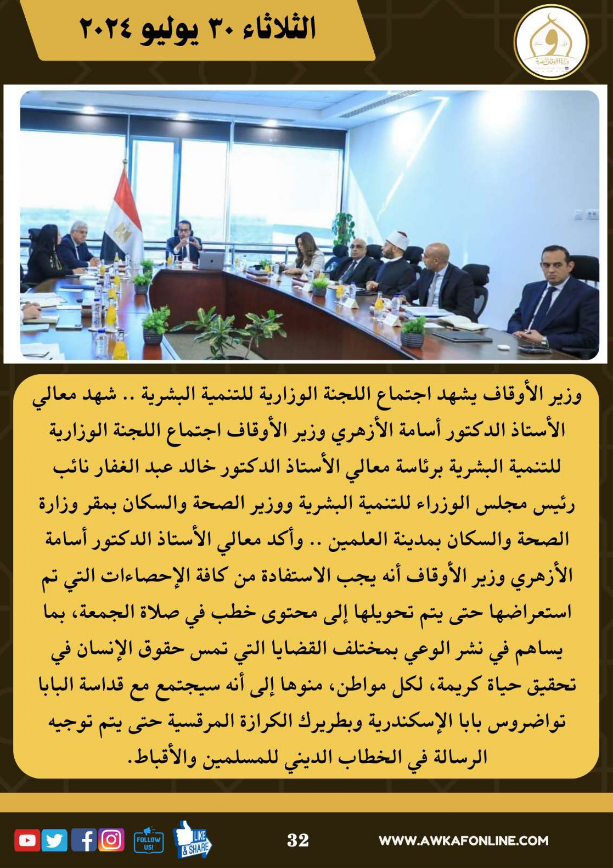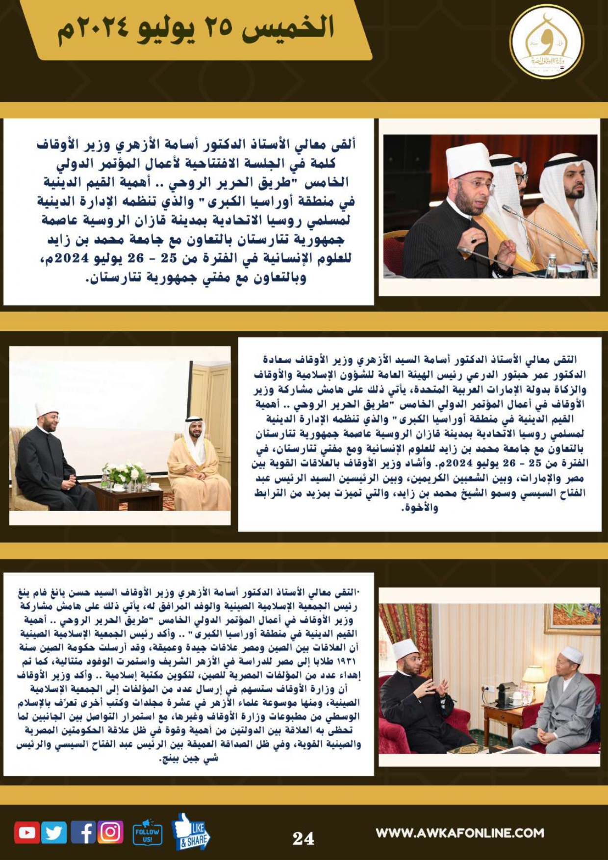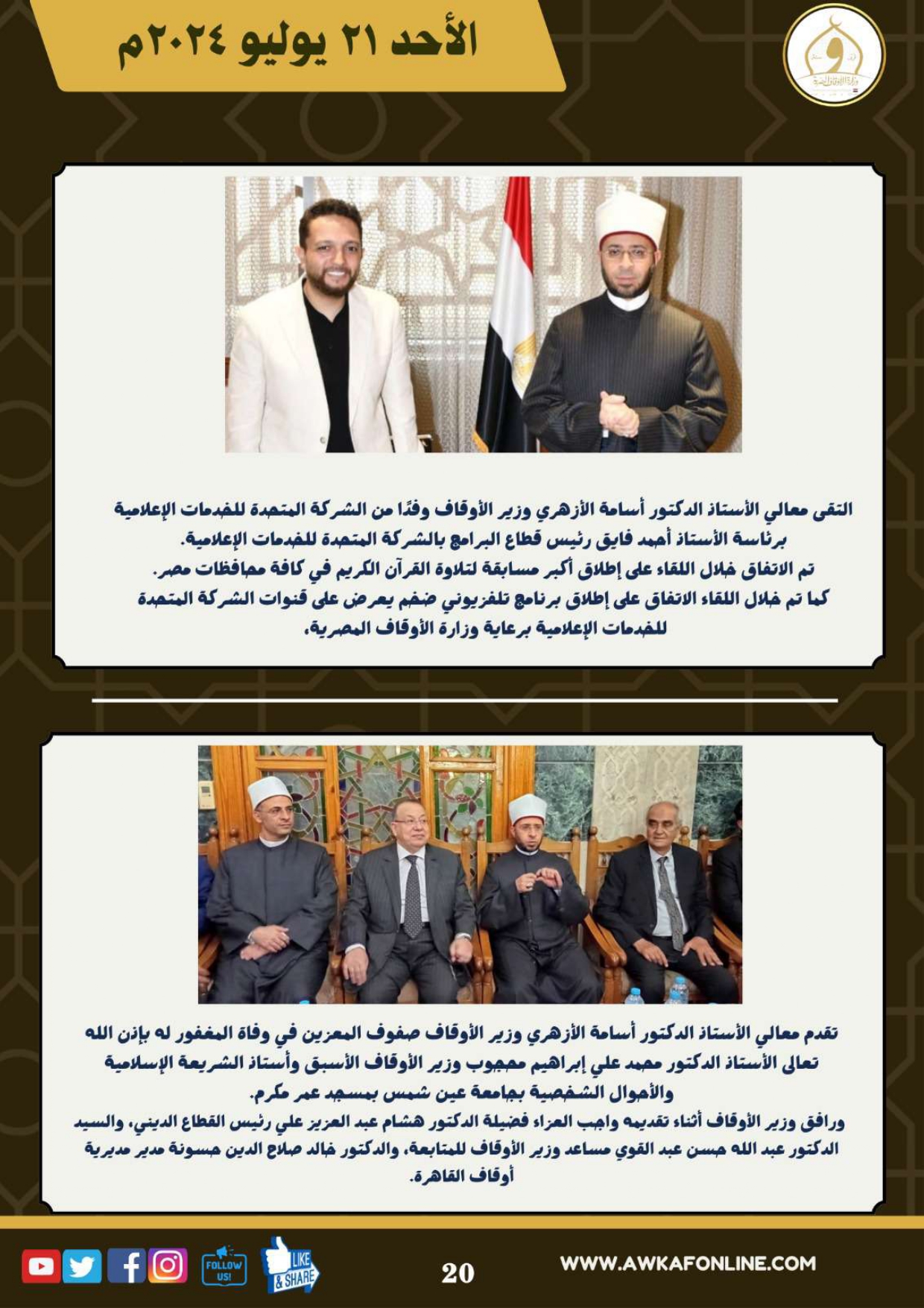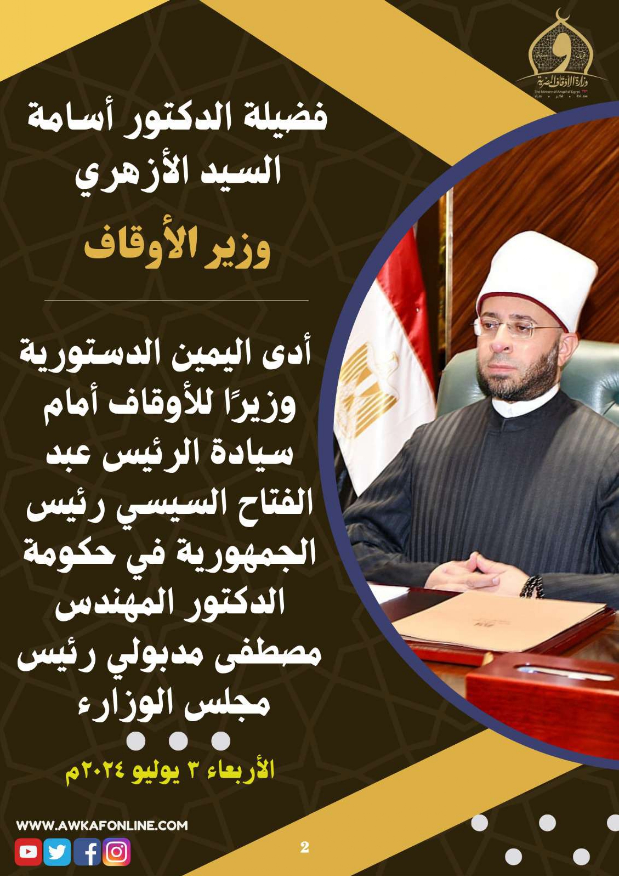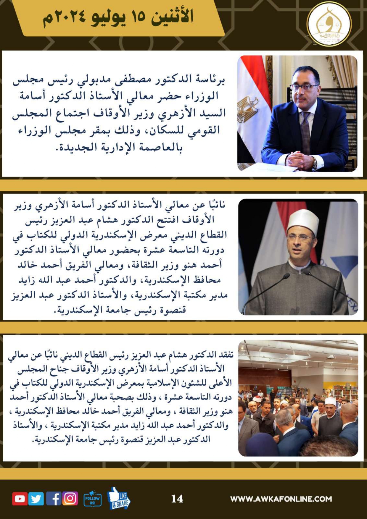 ننشر الحصاد الشهري لرصد أنشطة وزارة الأوقاف في الفترة من 3 حتى 31 يوليو 2024م