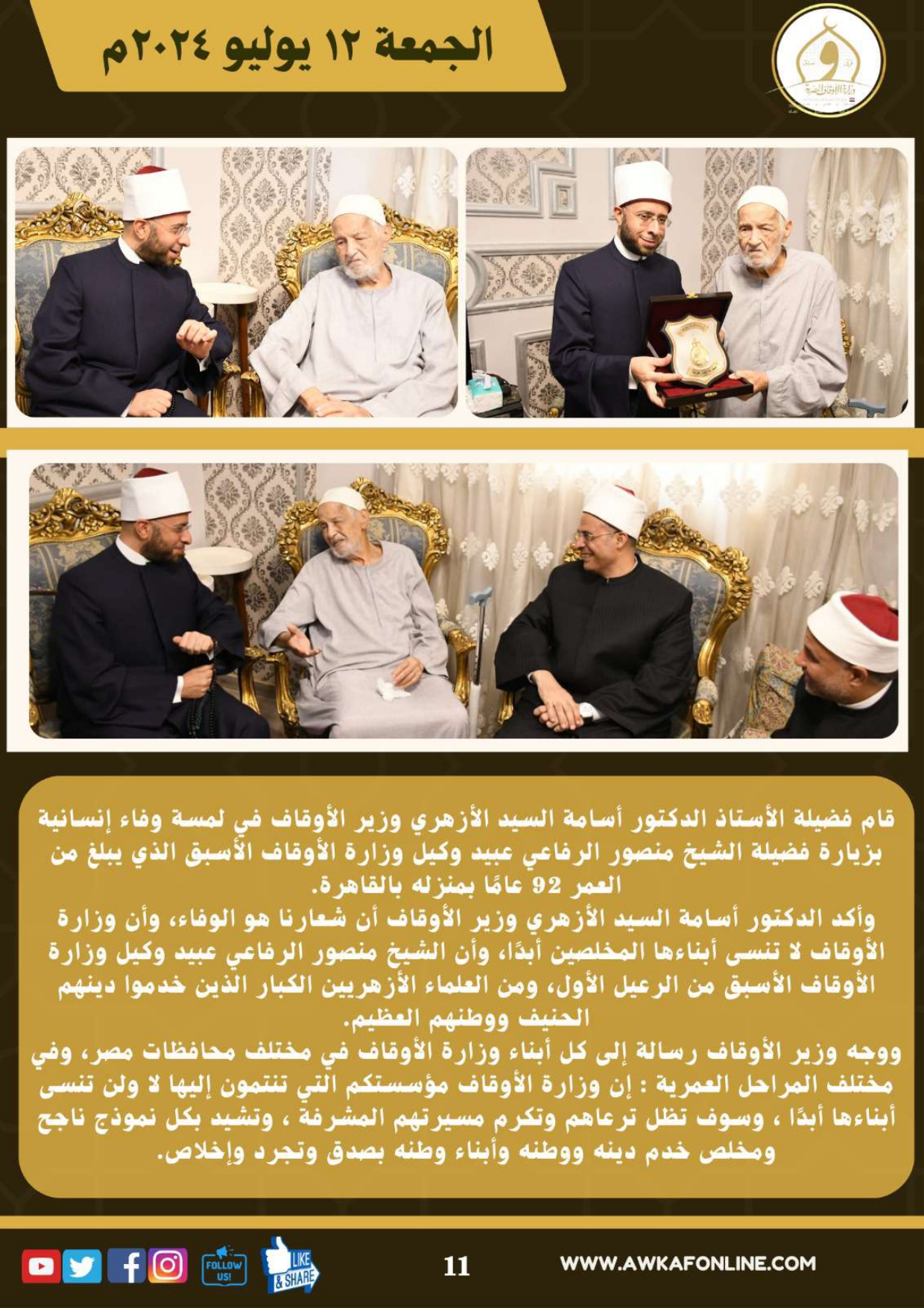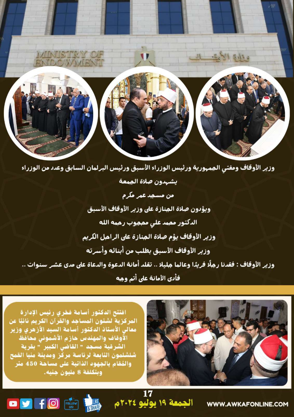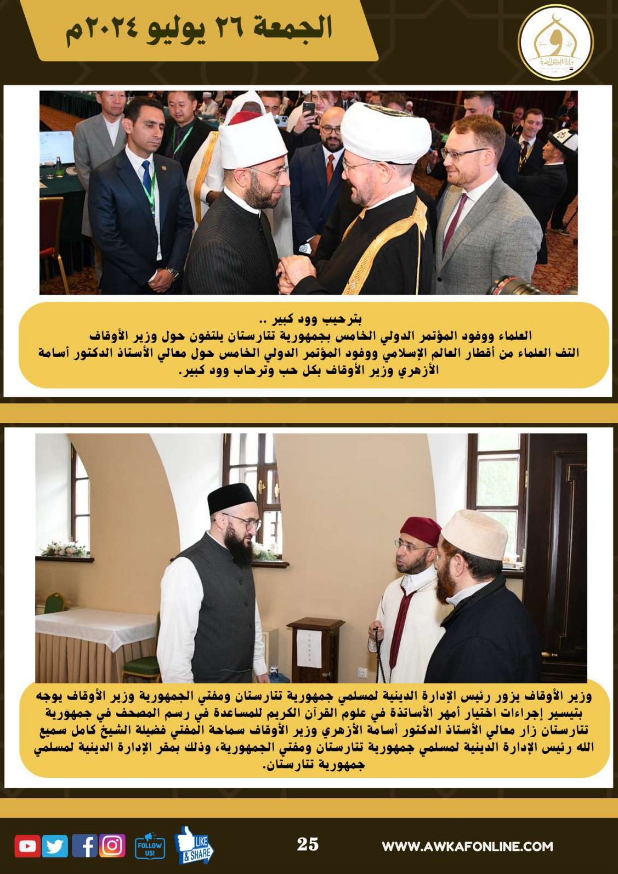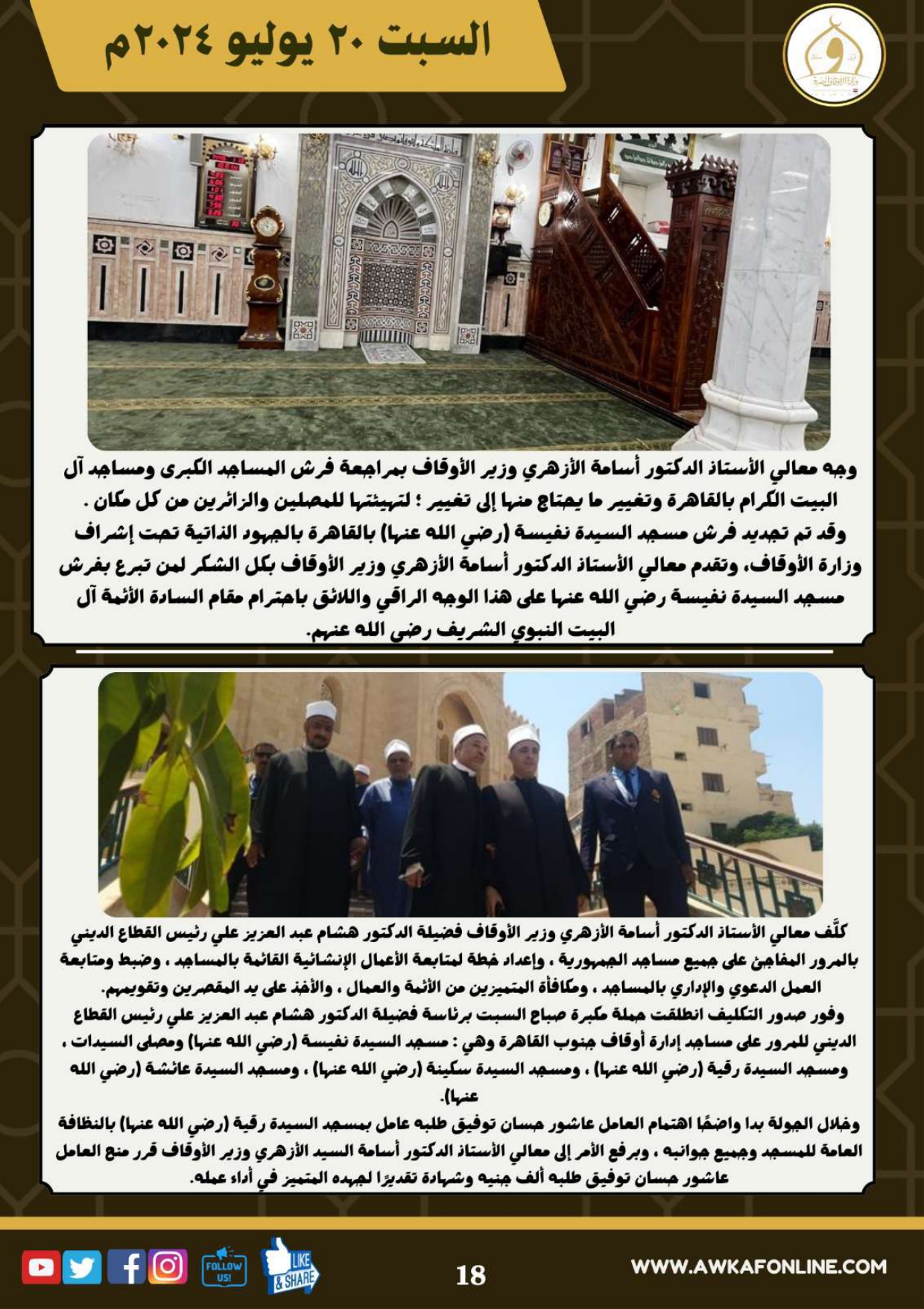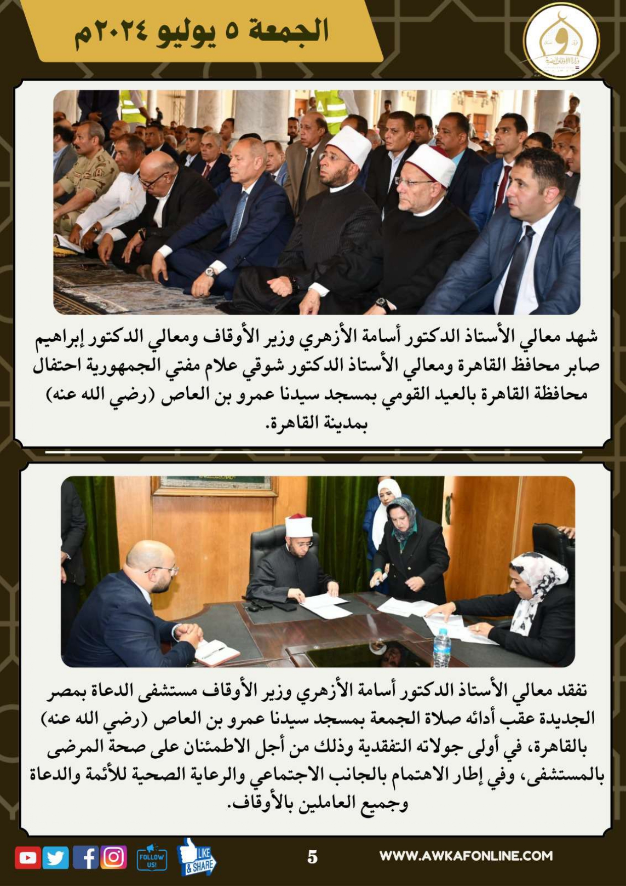 ننشر الحصاد الشهري لرصد أنشطة وزارة الأوقاف في الفترة من 3 حتى 31 يوليو 2024م