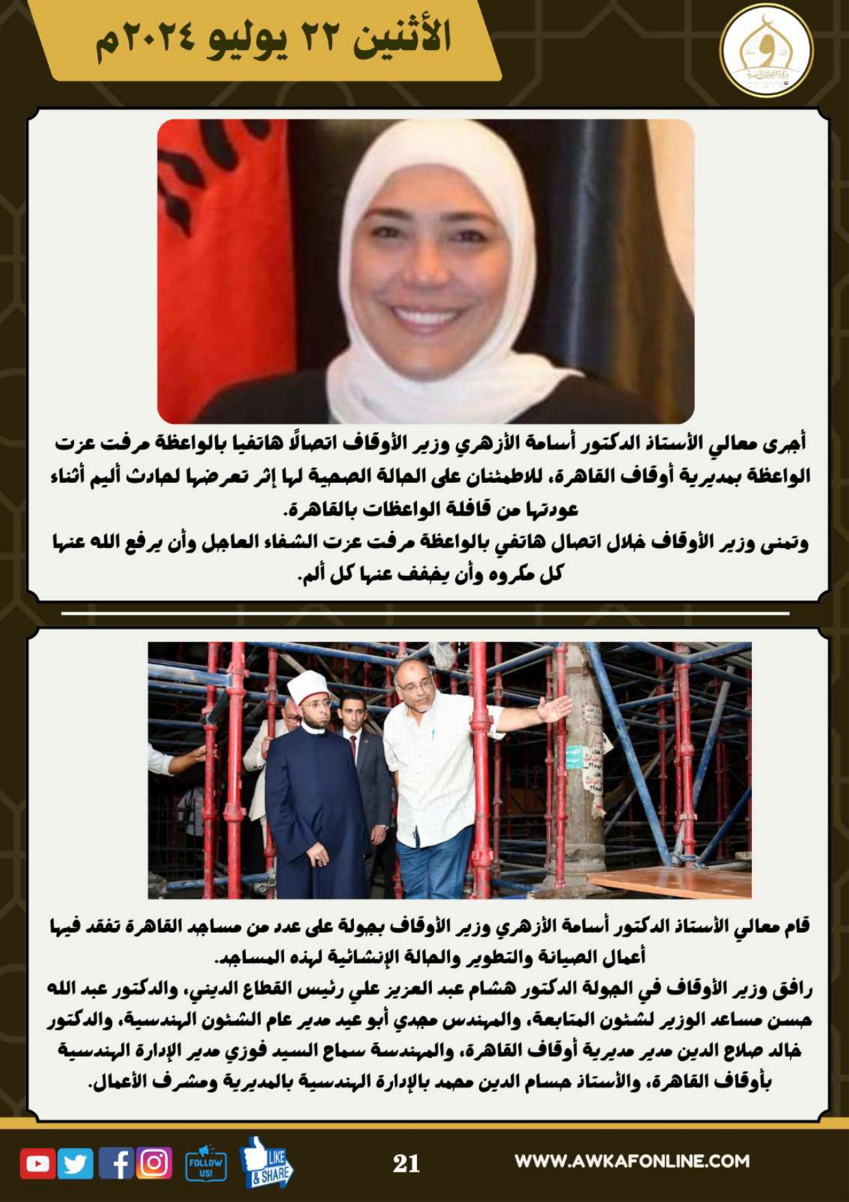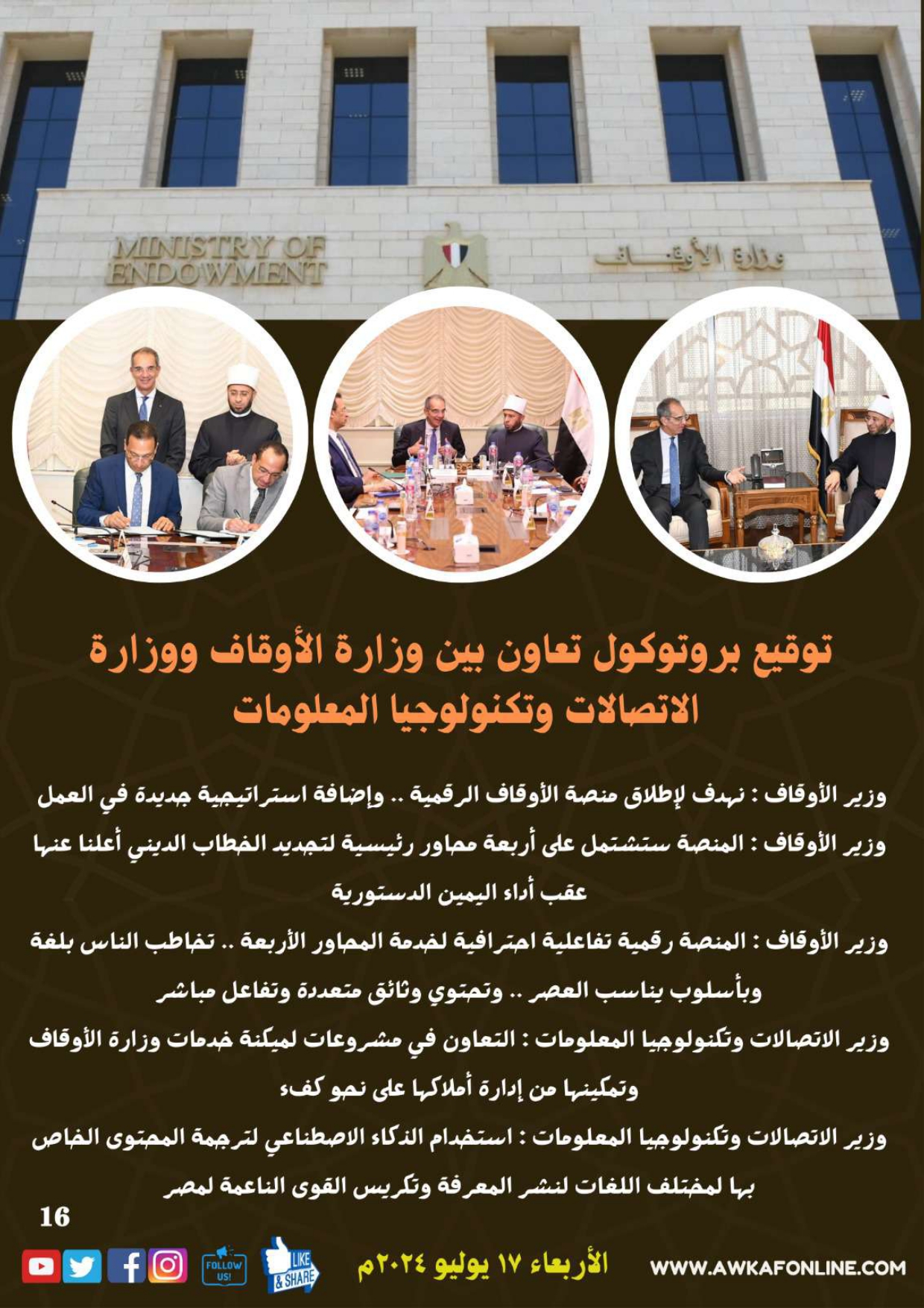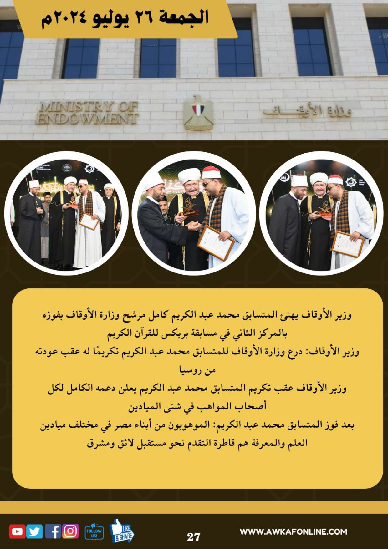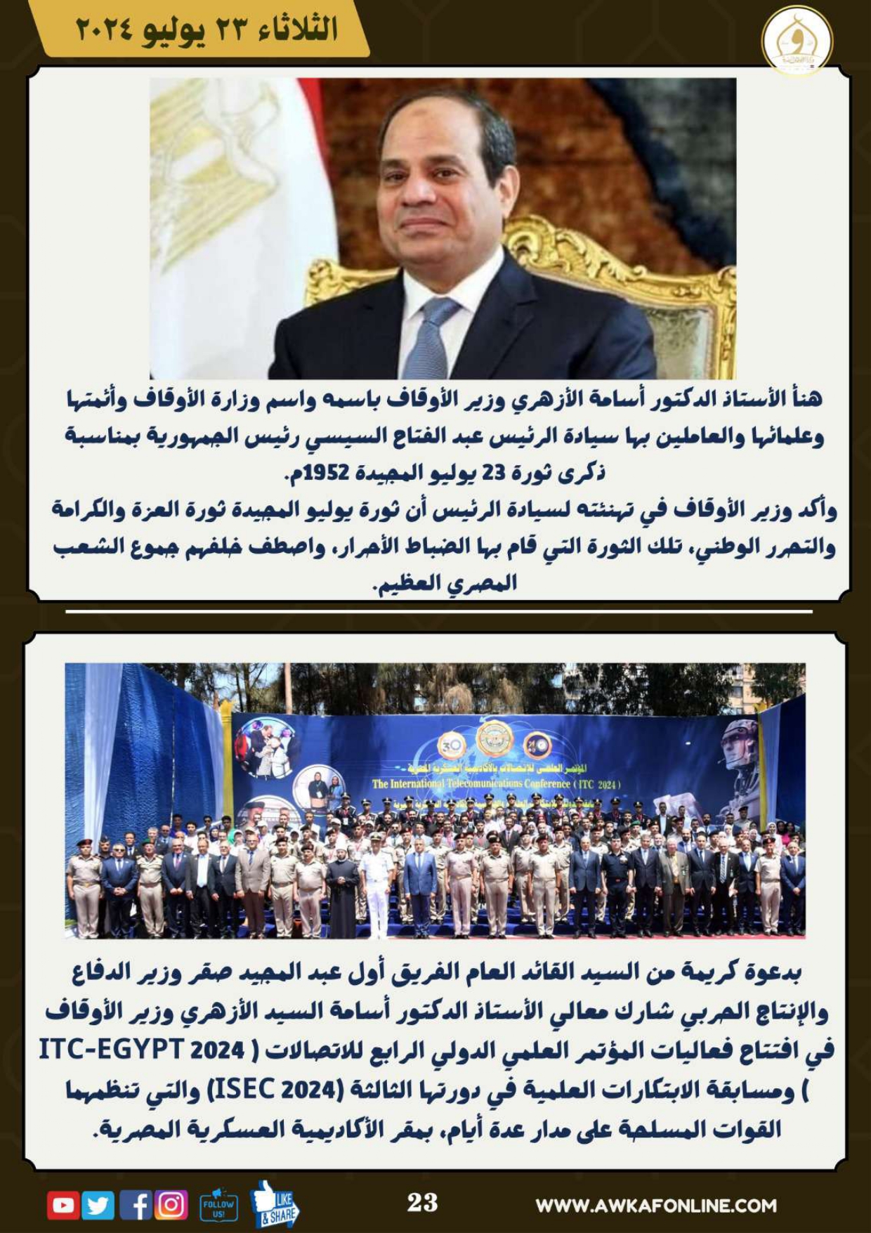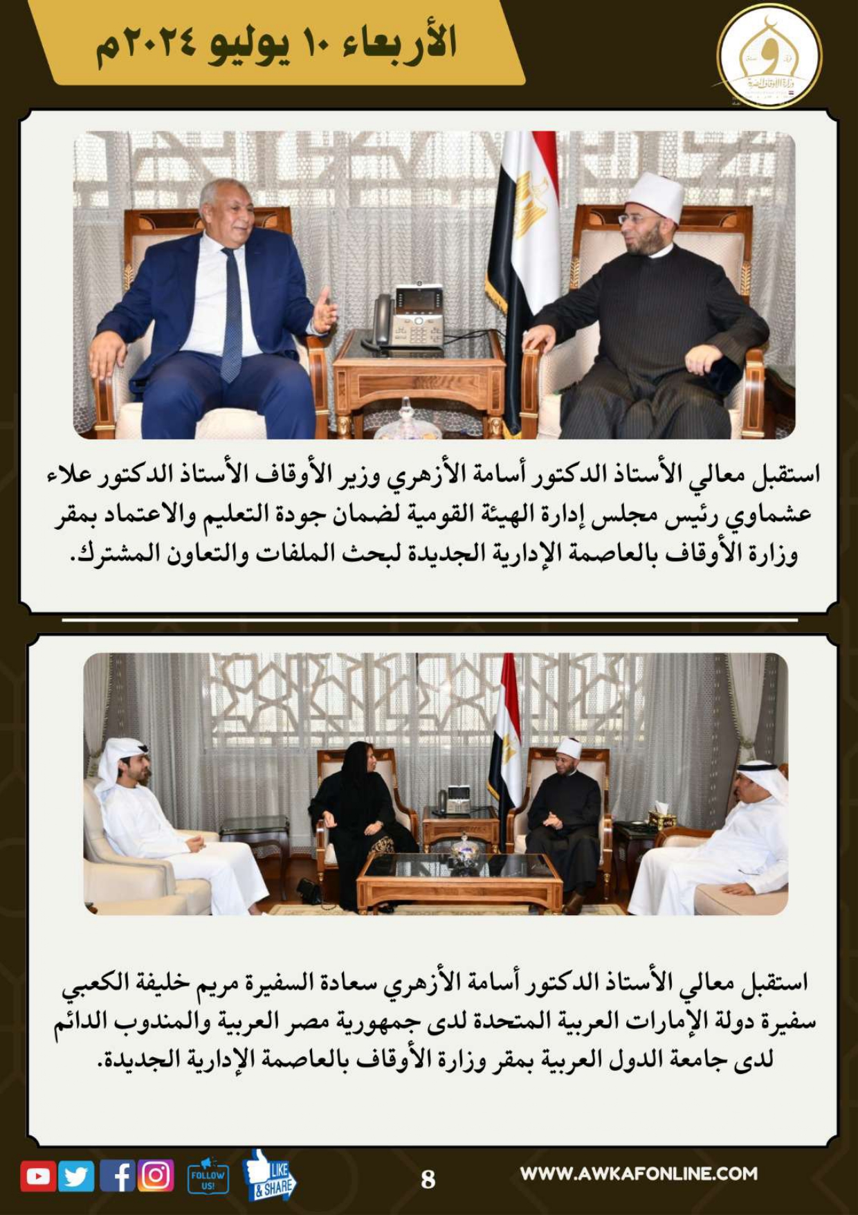 ننشر الحصاد الشهري لرصد أنشطة وزارة الأوقاف في الفترة من 3 حتى 31 يوليو 2024م