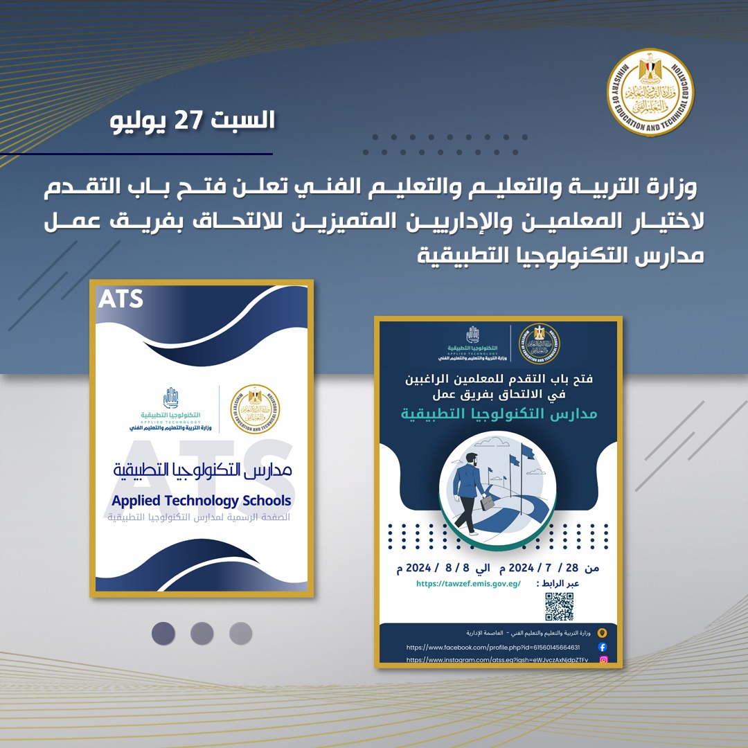 وتوضح الوزارة أنه سيتم التواصل مع المتقدمين عبر البريد الإلكتروني أو الهاتف بعد غلق باب التقدم مباشرة، لتحديد مواعيد المقابلات الشخصية، والتي يعد اجتيازها ضرورة أساسية للالتحاق بمدارس التكنولوجيا التطبيقية.