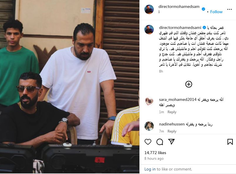 ونشر محمد سامي عبر حسابه الرسمي بموقع "انستجرام"، صورة تجمعه بالراحل تامر فتحي، وعلق عليها قائلا:" عمر بحاله يا تامر كنت ببقى مطمن عشان وقفتك اللي في ظهري دي، كنت بعرف أحقق أي حاجة بفكر فيها في الشغل مهما كانت صعبة عشان انت يا صاحبي كنت موجود".