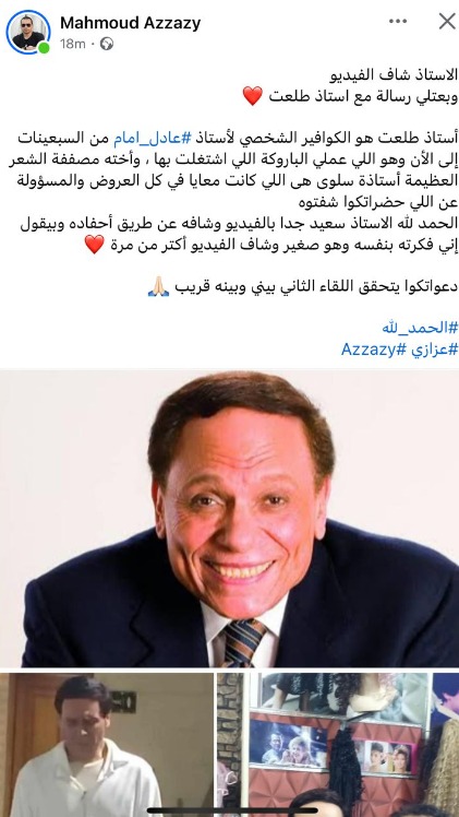 كتب محمود العزازي منشور على صفحته الرسمية عبر موقع التواصل الاجتماعي "فيسبوك" وعلق قائلا : "الأستاذ شاف الفيديو وبعتلي رسالة مع أستاذ طلعت .. أستاذ طلعت هو الكوافير الشخصي لأستاذ عادل إمام من السبعينات إلى الآن وهو اللي عملي الباروكة اللي اشتغلت بها، وأخته مصففة الشعر العظيمة أستاذة سلوى هي اللي كانت معايا في كل العروض والمسؤولة عن اللي حضراتكم شوفتوه".