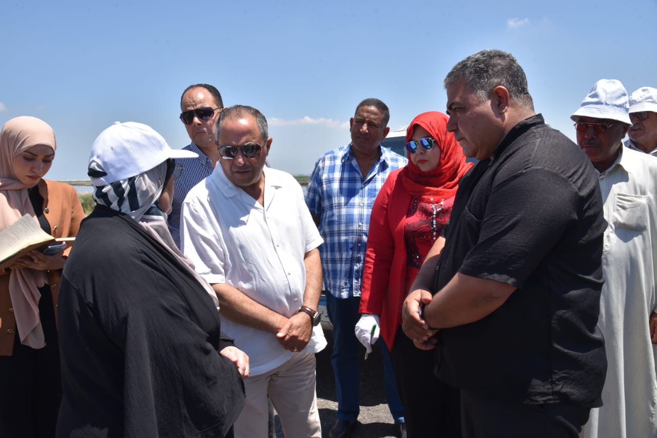 و استمع المحافظ لاعمال تطوير المزارع السمكية وأعمال الصرف والري ،بمنطقة مثلث الخير ، لتشمل اعمال تطوير المزارع السمكية انتاج 200الف طن من الأسماك بدلا من انتاج 70الف طن ، و ذلك بالتعاون مع الثروة السمكية .