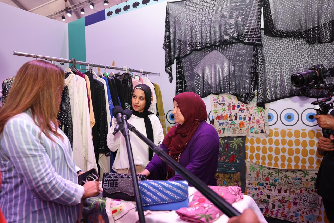 وقد أبدت الدكتورة منال عوض إعجابها بالمنتجات المعروضة بالمعرض والتى صنعت بايدى سيدات مصريات من مختلف المحافظات ضمن المشروع القومى لتنمية الأسرة المصرية لحرف التطريز السيناوي، التلي، الرسم عالقماش، خوص، خياطة وتطريز، حرف الكروشيه وحلي.