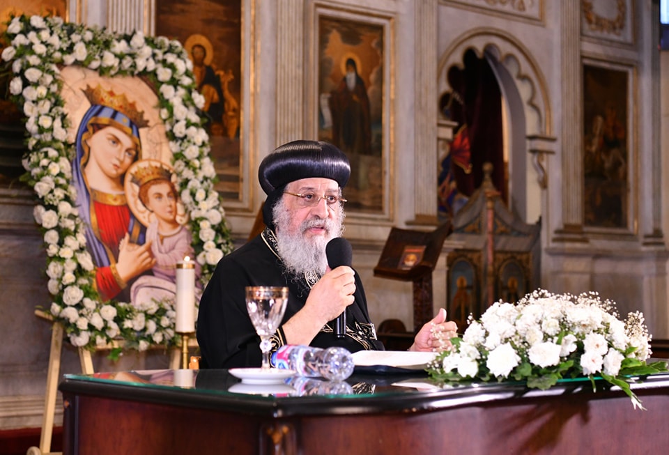 وفي كلمته أثنى قداسة البابا على الدور الهام الذي تقوم به الكلية ودورها المؤثر في الحياة الكنيسة والخدمة مقدمًا الشكر لكل القائمين على العمل بالكلية بعد تطويرها، وشكر أيضًا مقدمي مشروع التخرج على المعلومات القيمة التي قدموها بأسلوب مشوق، وتأمل قداسته كلمة بعنوان "عاشق لبيت الله" متأملًا في المزمور ٨٤ "مَا أَحْلَى مَسَاكِنَكَ يَا رَبَّ الْجُنُودِ.... إلخ".