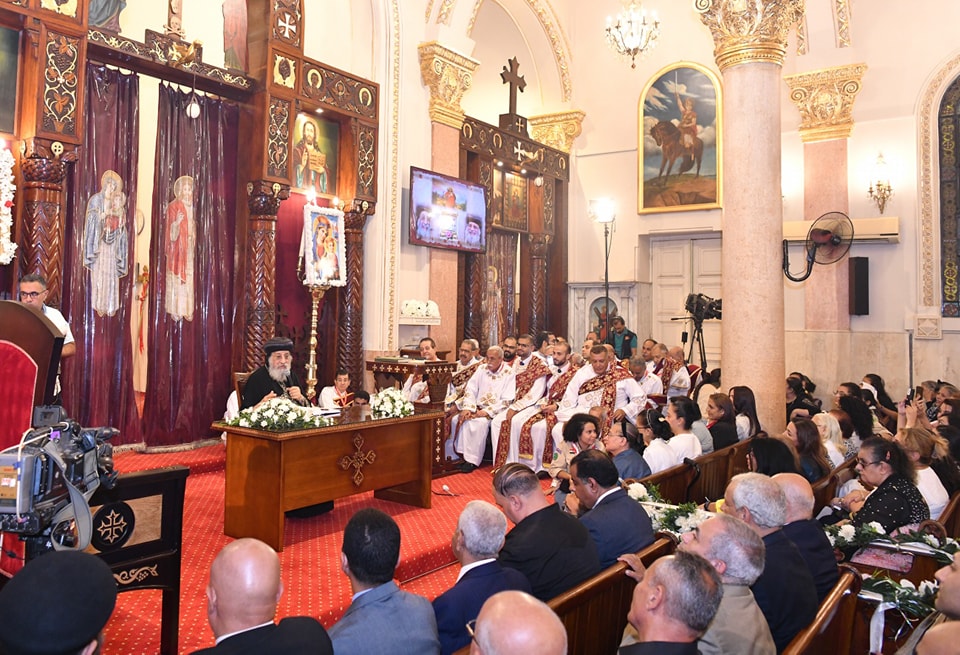 وصلى قداسته رفع بخور العشية، بمشاركة الآباء الأساقفة العموم المشرفين على القطاعات الرعوية بالإسكندرية، والأب القمص أبرآم إميل وكيل عام البطريركية بالإسكندرية، وكهنة الكنيسة،٩ وعدد من أعضاء مجمع كهنة الإسكندرية.