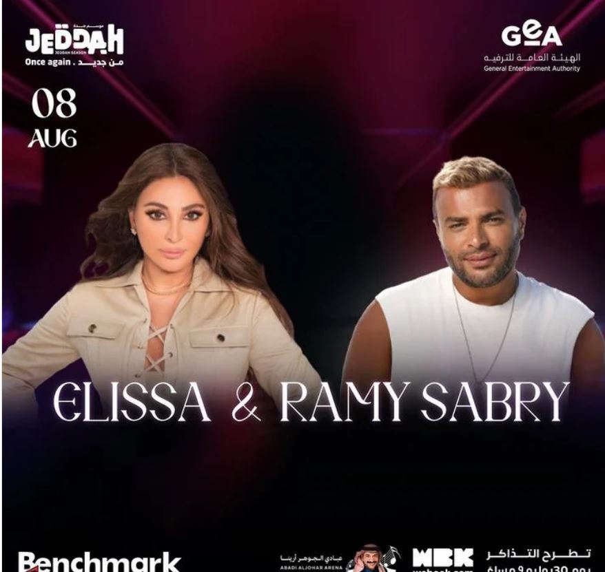 وصلت الفنانة إليسا، خلال الساعات الماضية، إلى مدينة جدة بالمملكة العربية السعودية، استعدادًا لحفلها مع الفنان رامي صبري، المقرر إقامته اليوم ، على مسرح عبادي الجوهر آرينا، ضمن حفلات موسم جدة.