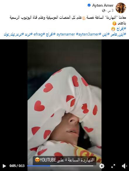 وحققت النجمة أيتن عامر نجاحاً من خلال أغنياتها الأخيرة "مثيرة للجدل" على موقع الفيديوهات "يوتيوب" ومنصات الموسيقى، وحساباتها على مواقع التواصل الاجتماعى المختلفة، والتي صورتها على طريقة الفيديو كليب.